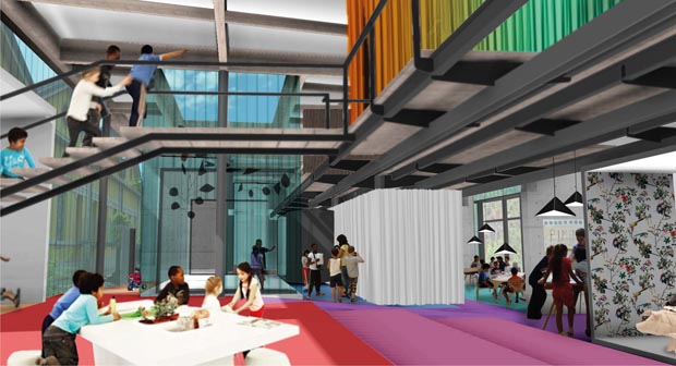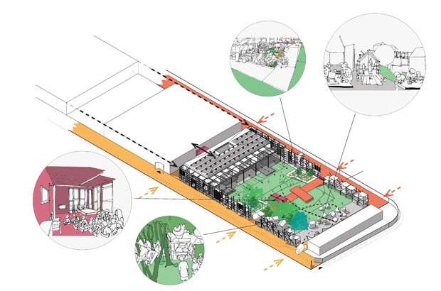 Inner Landscape. Studio for social interaction and up cycling (furnishing, lunch spaces, multifunctional spaces, workshop space).
