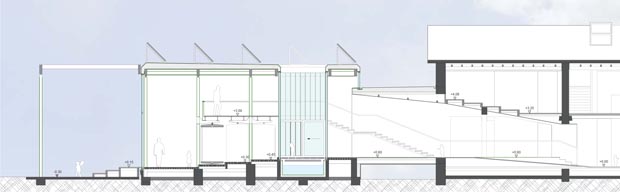 A system of natural air ventilation is implanted. In warm summer days cooler air is sucked from the shadowy gap between the existing school and the enlargement as well as from the patio space. In winter the air heat exchanger system reduces the loss of energy.