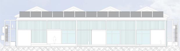 We understand the Loris Malaguzzi Center as a strip of collective experience. Following that logic with the Reggio school enlargement, we propose scenarios of different evolutionary speeds which rely on our belief in the quality of participative collective exchange of all involved stakeholders, developing within the bends of this process of education and experiment. The enlargement building sits next to the existing school leaving a 4m gap that opens up a pocket to the public path on the east side of the strip. On the west the space gap becomes the extension of the indoor workshop space connecting it to the west path, which is mainly used by the school children. This way the preserved façade of the existing school is only penetrated carefully in one spot and not touched anywhere but there. Yet the penetration provides a strong connection between the new amenities and the piazza of the existing school.