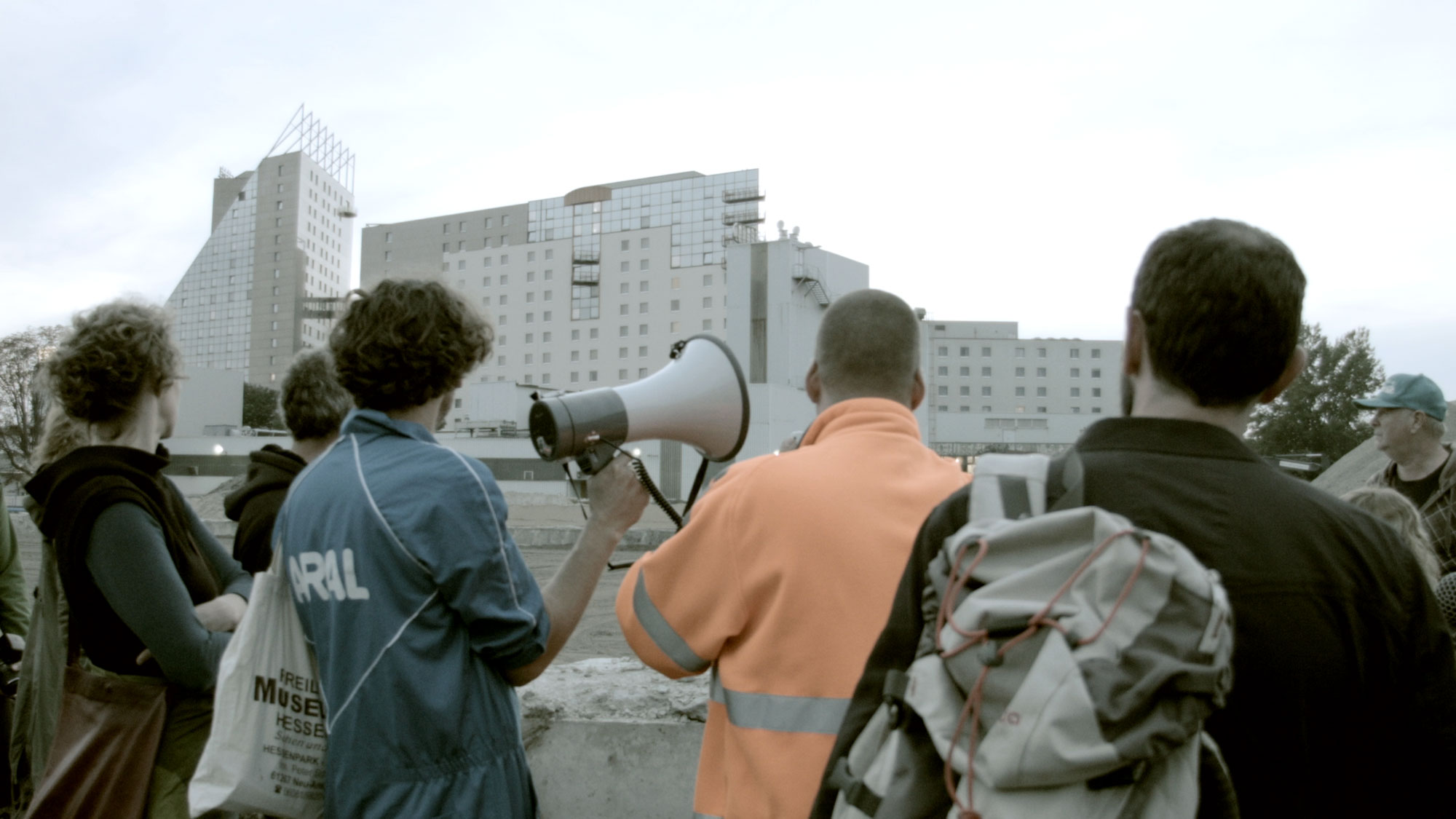 DIE PARADE Im Rahmen des Nordwindfestivals inszeniert raumlabor berlin eine Parade entlang der Baustelle der Autobahn A100. In einer Mischung aus Realität und Absurden, Inszeniertem und Zufälligkeiten bewegen wir uns an der Trasse durch den städtischen Alltag. Dabei treffen wir auf Künstler und Autoschrauber, ein Fischrestaurant und einen Philosphen, der Besucher wird zum Teil einer aktiven Stadtcollage. Der städtische Transformationsprozess setzt unsere alltägliche Ordnung außer Kraft – die Performance gewinnt die Oberhand – die Stadt wird zum Raum der Möglichkeiten.