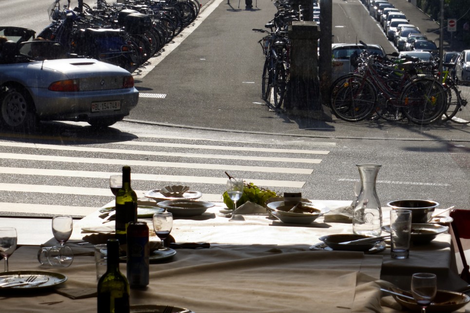 Wenn Deutungshoheiten über »das Gute« und »das Öffentliche« hier exemplarisch zur Diskussion stehen, so liesse sich die Liste jener Begriffe (im Feld des Urbanen) um eine Vielzahl von weiteren Signifikanten erweitern. Was zum Beispiel bedeutet »Arbeit«, was bedeutet »Wohnen«, was assoziiert (wer) mit »Partizipation«? Zunehmend zeichnet sich für uns heraus, dass es sowohl zwischen den unterschiedlichen Disziplinen wie Künstlern, Stadtplanern, Architekten, Soziologen und Politikern etc., als auch zwischen jenen »Experten« und den Experten des Alltags, um eine immense Übersetzungsaufgabe geht. Wie aber lernen und erweitern wir eine neue gemeinsame Sprache? Welcher Art könnte diese Sprache sein? Wie könnte ihr Vokabular klingen? Wie treten wir in einen Dialog mit der Vielheit menschlicher und nicht-menschlicher Akteure? Was erzählen uns tätowierte Autos am Strassenrand oder Tätowierer über Entfremdung? Wie verhandeln und/oder nutzen wir Konflikte? Welche Orte, Momente, Räume und Möglichkeiten brauchen wir dafür? Was müssen wir (mit uns) hinzu erfinden? Und was könnte ein gemeinsames Frühstück damit zu tun haben?