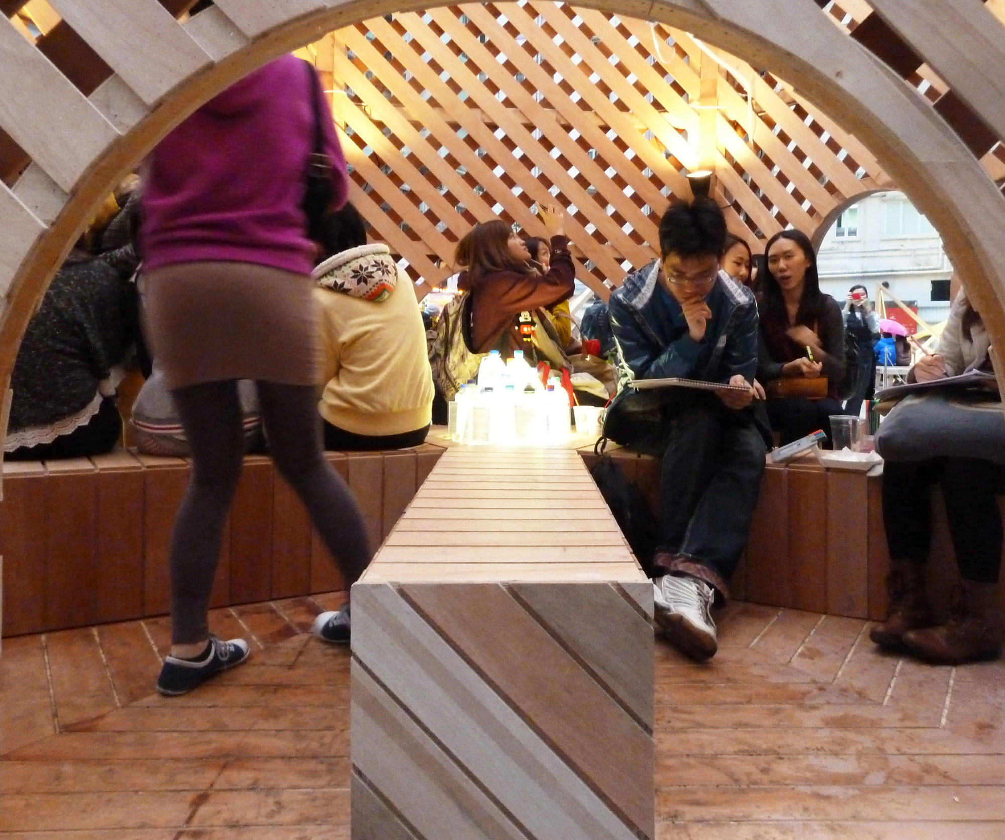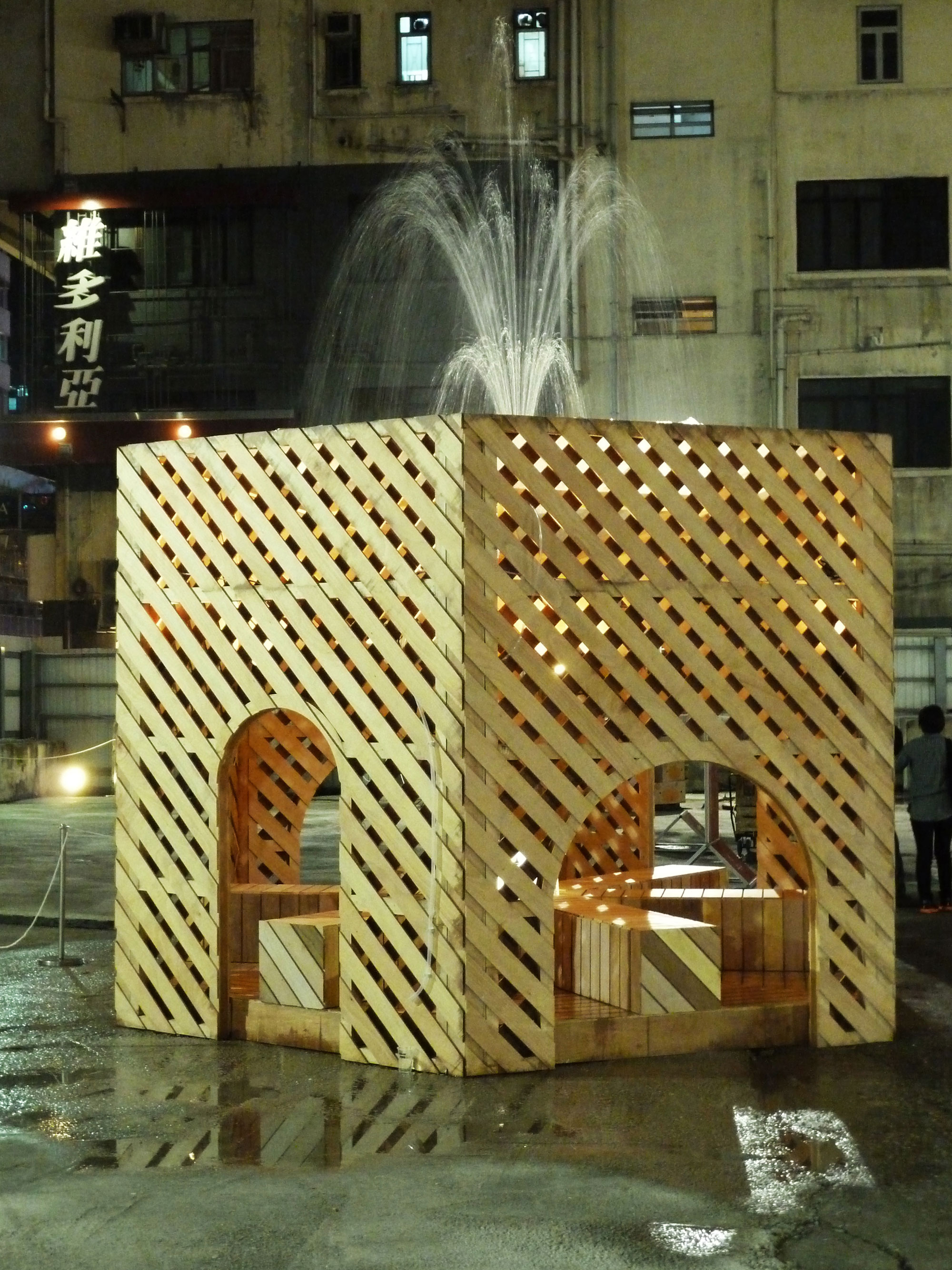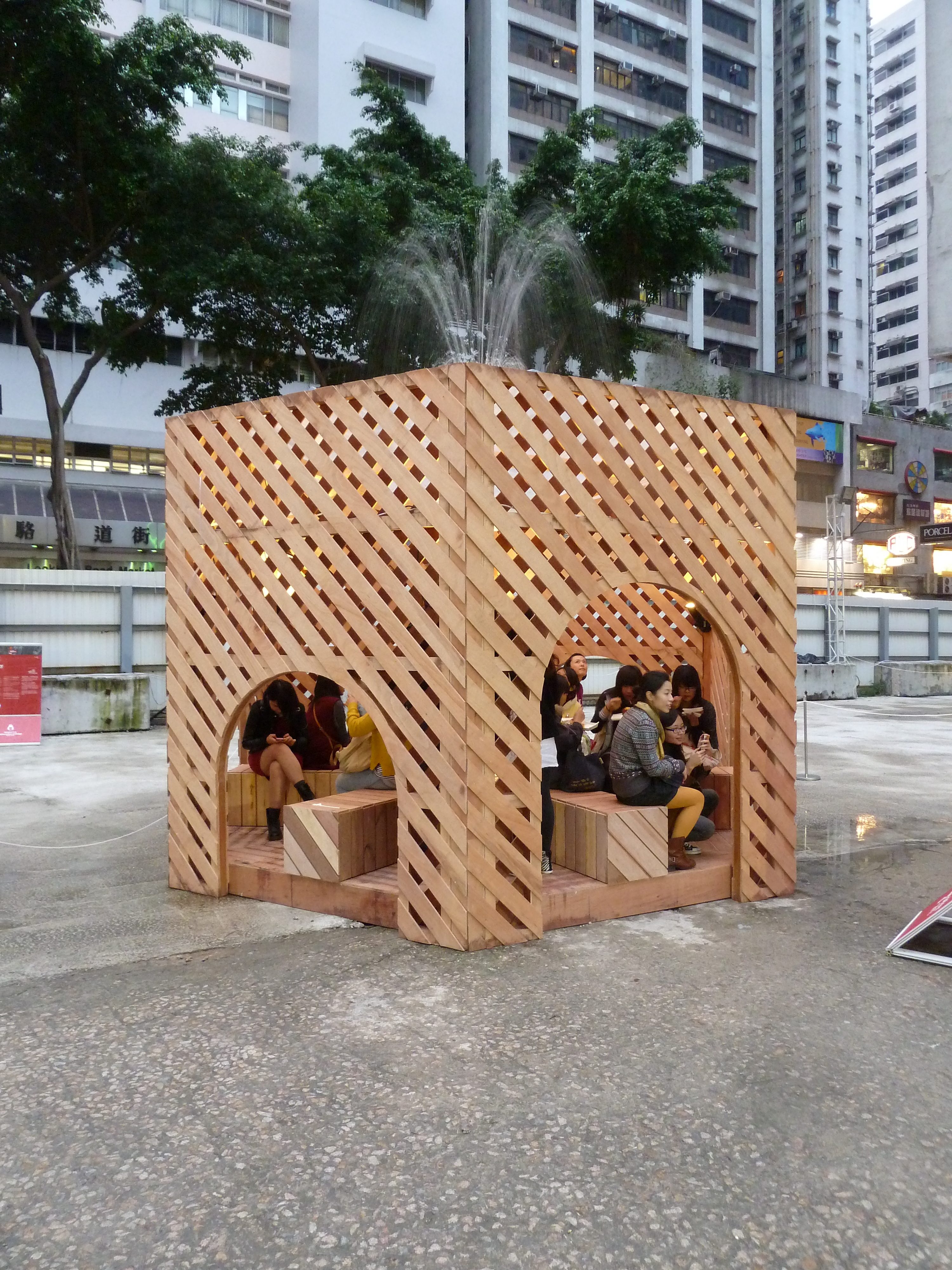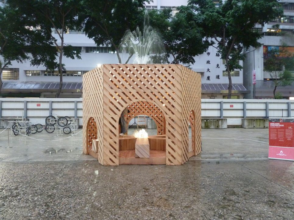 Für Detour 2012 entwickeln wir ein Brunnenhaus, das an zentraler öffentlicher Stelle des Ausstellungsgeländes in Wan Chai auf einem leeren Parkplatz der Polizei errichtet wird. Es folgt dem Konzept eines bewohnbaren Denkmals, das einen Innenraum als Treffpunkt und Ort der Interaktion um einen Brunnen bietet. Das Sprudeln des Wassers wird als Geschenk inszeniert und als besonderes Ereignis gefeiert. Das Hongkong Fountain House bezieht sich auf alte Archetypen der Architektur, der Brunnen auf dem Platz, das Waschhaus in der Stadt, das Brunnenhaus als Teil des Klosters, und sucht seine Bedeutung im dichten öffentlichen Raum der heutigen Hongkonger Gesellschaft.
