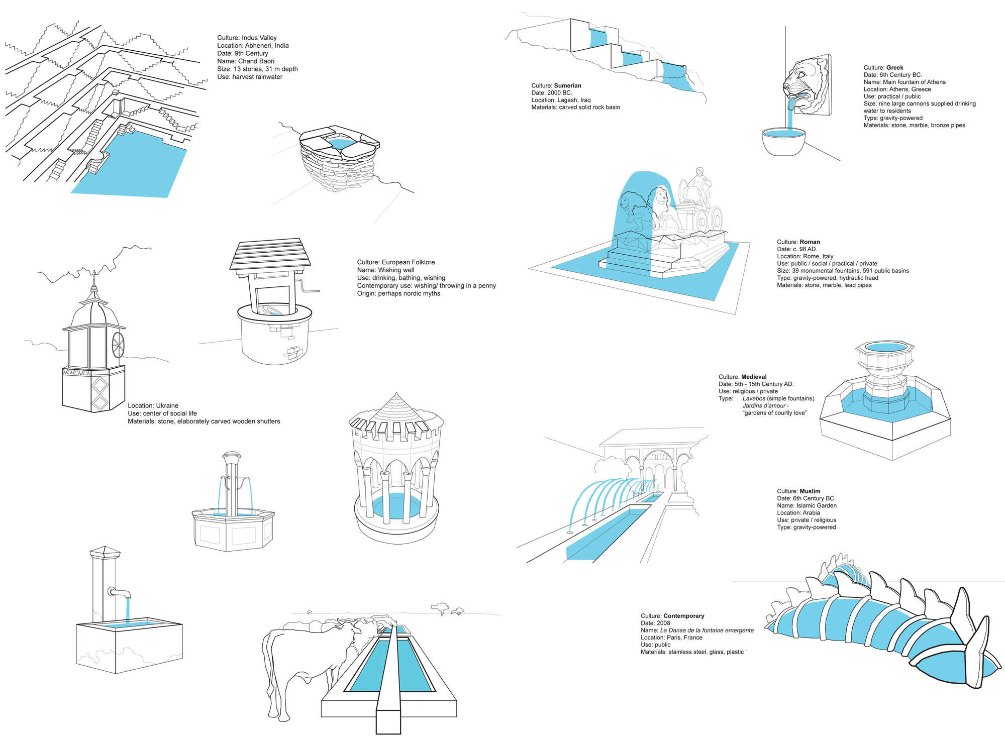In our project for Hong Kong we have a look on water as a common good. We focus our work around the fountain, as an old tool to provide water to be used by all. We investigate the availability of drinking water in public spaces in contemporary Hong Kong, having a look on the economy behind the distribution of waters and the specific situation in Hong Kong where most of the drinking water comes from the mainland China. We also keep in consideration that drinking water is a limited good. That is why we have a look on low tech possibilities on harvesting and treating of rainwater.