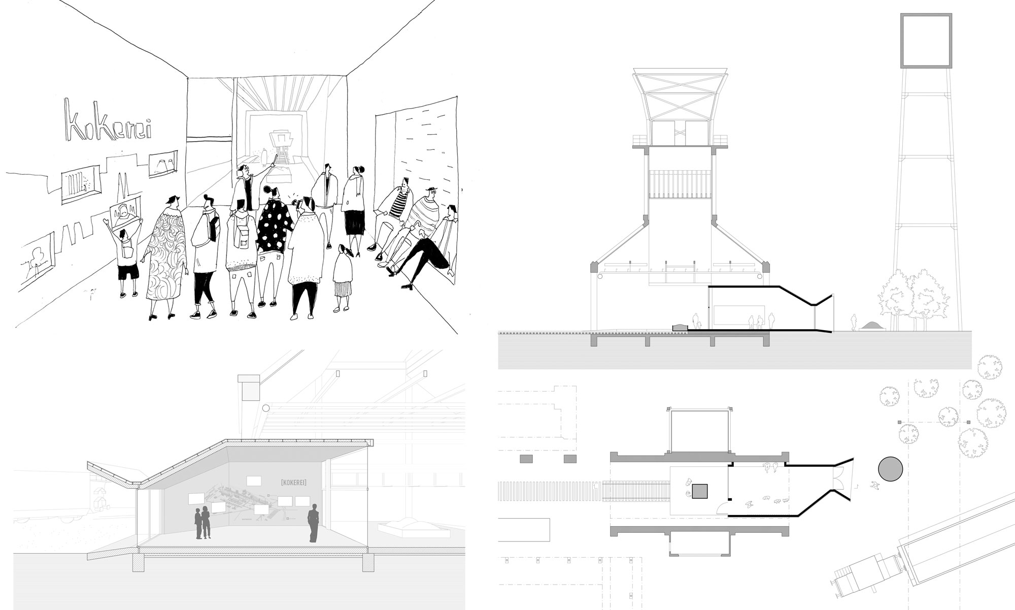 Um auch im Innenraum die Geschichten poetisch erzählen zu können, ist es uns wichtig, dass die Stationen, welche sich zunächst nach außen zurücknehmen, eine eigene Identität entwickeln. Denkt man z.B. an die Museumsinsel Hombroich, erinnert man sich nicht nur an den großartigen Ort und die phantastische Sammlung, sondern immer auch an die Pavillons, welche jeweils ganz spezifisch in die Auenlandschaft eingefügt wurden. Die Baukörper stehen deshalb für uns nicht nur für Wissensvermittlung, sondern sind Katalysatoren, welche die Kokerei mit der Gegenwart verbinden. Durch zeitgenössische Ergänzungen entstehen in diesem großartigen Kulturdenkmal neue Dialogräume.