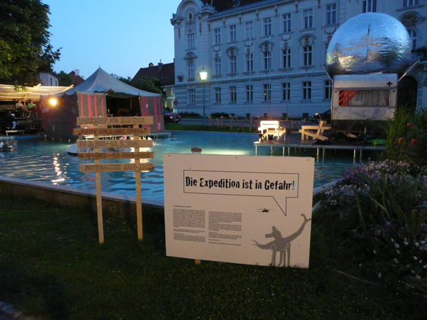 The Expedition is a project from raumlaborberlin for the Festpielhaus Sankt Pölten. It will last 3 years and is divided in 3 parts, articulated in several etappes. Every etappe has a new topic, in relation to the progress of the expedition’s preparation: the decision to leave to city, the crisis of parameters, the overcoming, the right way… Each topic is developed through an event program, taking place in different parts of the city and articulating 5 different kinds of events: a film screening, an evening of travelstories, a workshop for children, a mini-expedition and a public voting. Each event enables us to take another step in planning the expedition and take decisions.