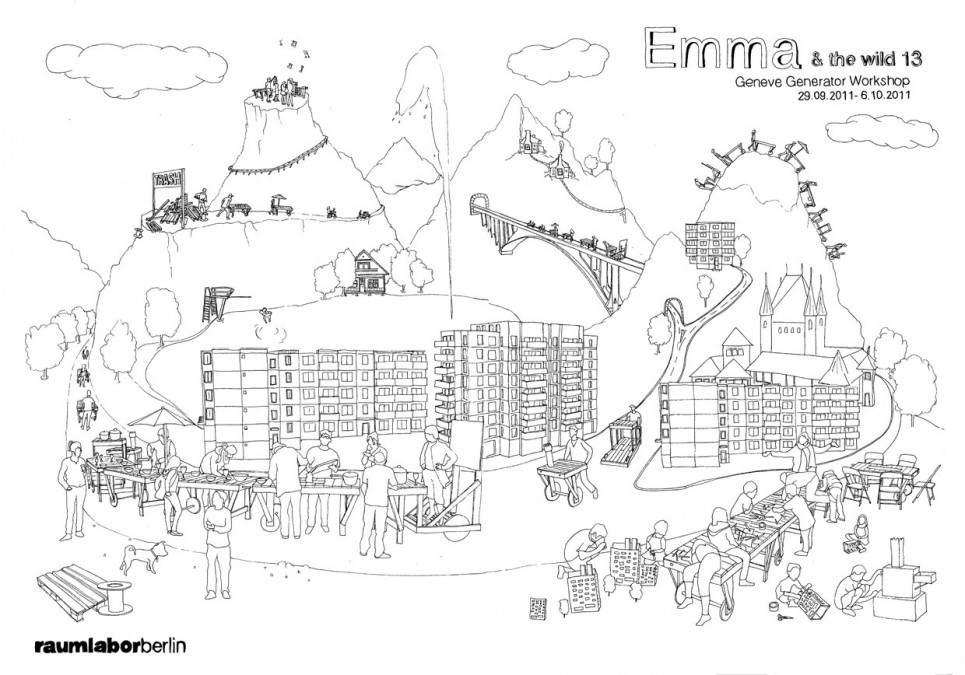 Im Parc des Acacias in Genf wurde EMMA als multifunktionale Werkstatt eingesetzt, um mit Kindern eine imaginäre Stadt zu