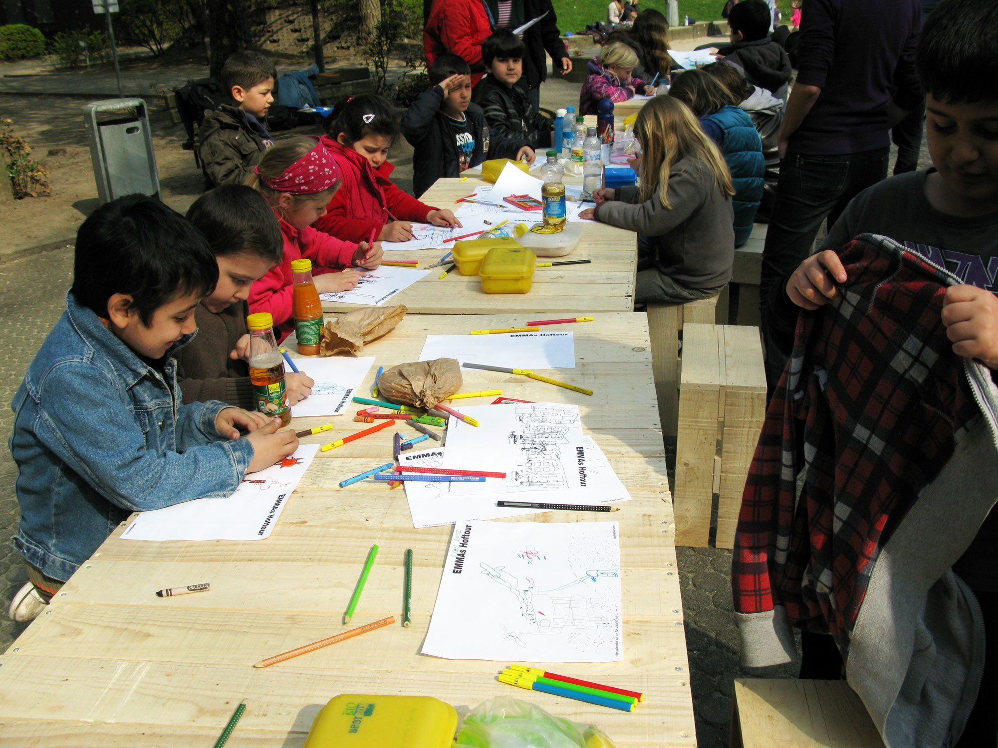Jede Aktionen beinhaltet Workshops mit Kindern und Anwohnern aus dem Quartier. Unter Titeln wie “Gärten und Freiräume in der Stadt“, “EMMAs großer Quartiersplan” oder “Kriegerinnenkurs” behandeln die Workshops unterschiedlichste Aspekte des Lebens im Mariannenquartier, seine speziellen Herausforderungen und Potentiale.