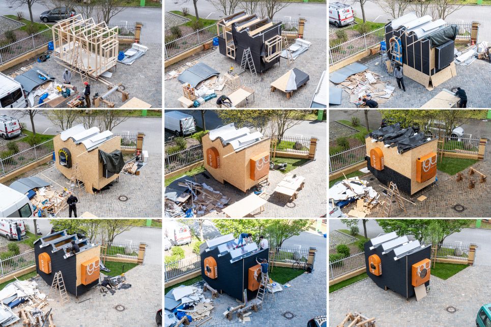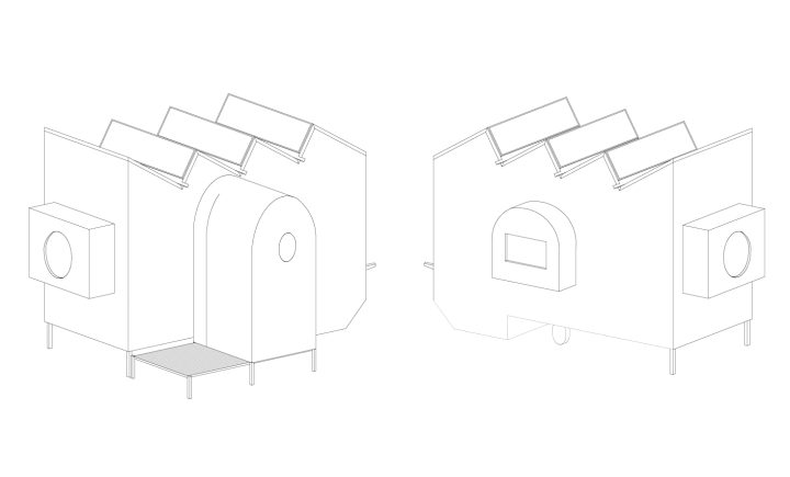 FAKE ESTATE was inspired by Gordon Matta Clark. It is an effective tool for urban practice, that reuses the platform of a damaged construction trailer. The new design was conceived to meet the definition of the Building Code for Berlin for buildings that do not require a permit (§61 BauOBerlin). It is a radical statement that Urban Practice is not based on property, we must think about it as agile and tactical. It is an active form that establishes a constant connection to its context and serves at the same time as protected space.