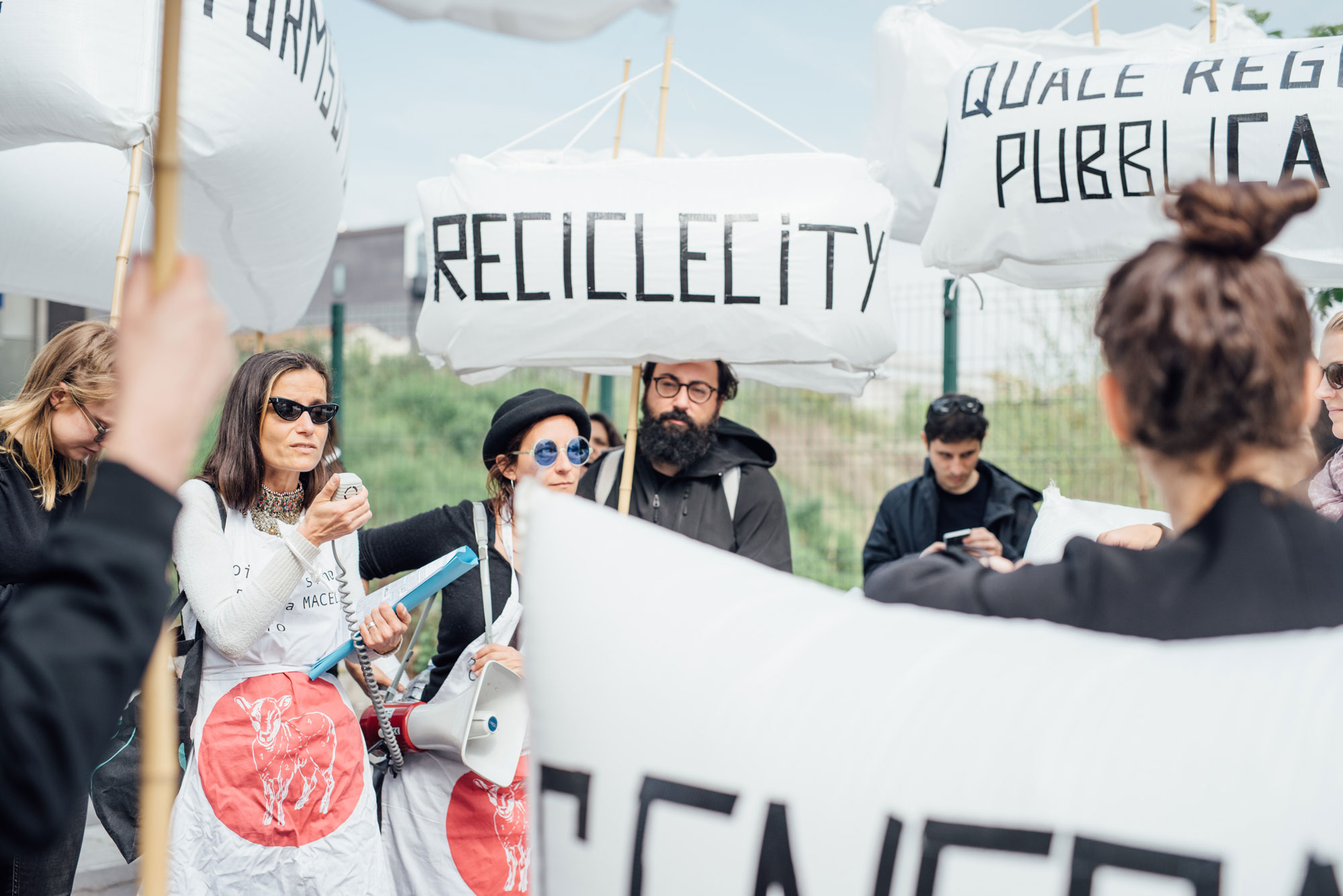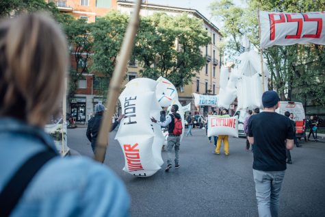 14:00 – 16:00 Protest Walk with objects derived from morning´s workshop. The walk starts at Passante Porta Vittor ria and gos along Via Monte Ortigara passing not inhabited building towers and abanded building sites. Then along the closed airport and demolished station Porta Vittoria and back to Viale Molise where the former slaughterhouse buildings that are now mainly empty are visited. Partially they are now being reused by the initiaive of ASL, Macao and Temporiuso. The walk will end in the courtyard of Viale Molise 62 in house 7 at shelter P8 .