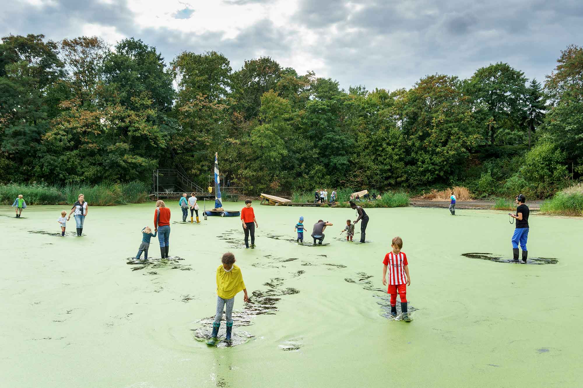 Floating University is a carefully designed place, where human-made architectures intertwine with the habitat of a multitude of organisms. In a water basin consisting of polluted urban surface water, it presents a paradoxical paradise for parallel and common actions. A place of ongoing surprises and encounters. The openness of the structures motivates the permeation of ideas and relationships between Individuals, university groups, initiatives, neighbors and other species.