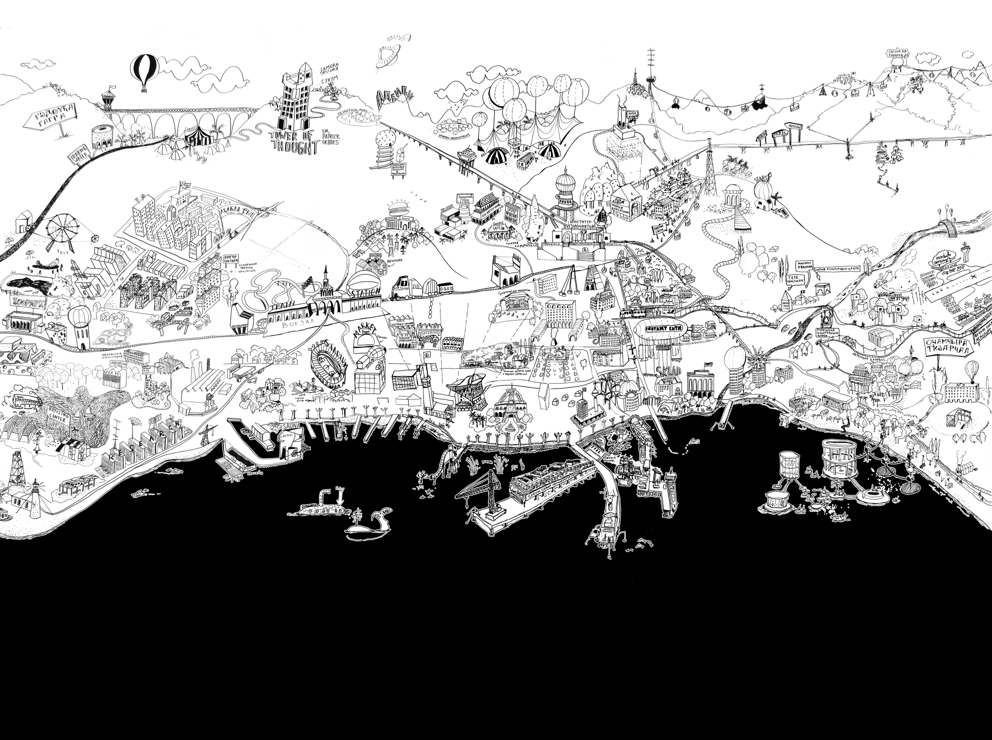 We first realized a big drawing on a billboard in the public space of Sukhum/i. Passers-by were invited to share their ideas and get it drawn into a collective vision for the future. We were positively surprised how people were eager to discuss what could happen in the city.