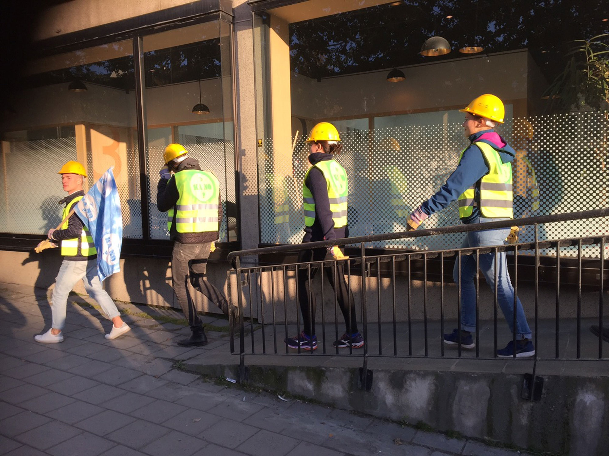 A parkour workshop was arranged at Nansenplass square in the form of “spot hunting”, using the availability of terrain and constructions in the area to create varied forms of movement and flow. Instructors were present to teach basic parkour moves.