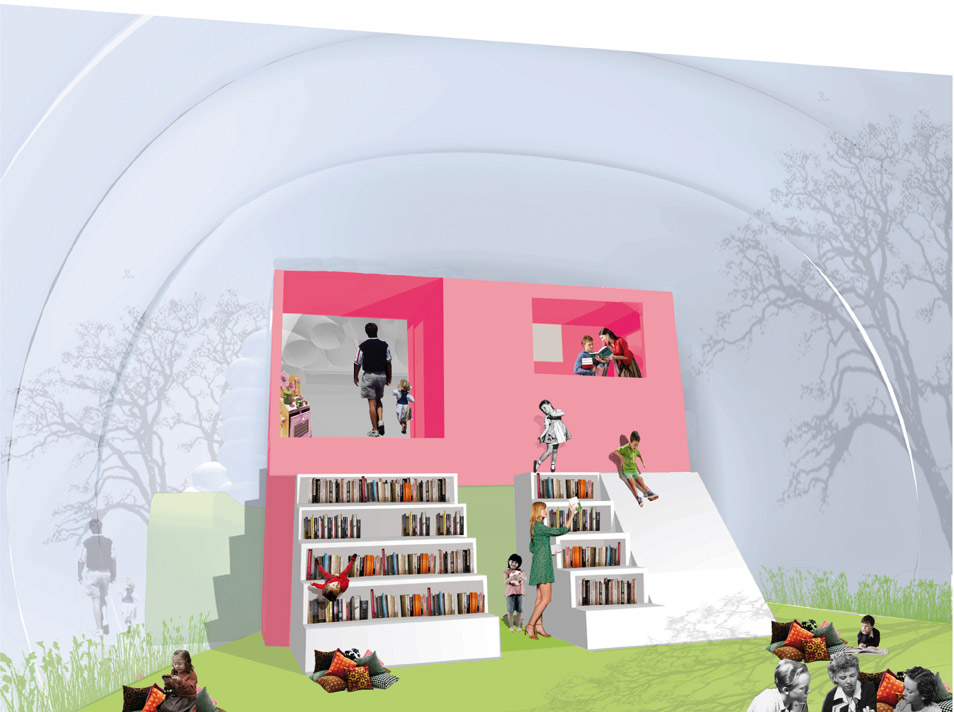 Diese Idee soll auf verschiedene Städte appliziert werden. Nachdem anfänglich davon ausgegangen wurde, dass man dafür bestehende Gebäude herrichtet, hat sich bei den Initiatoren die Überzeugung durchgesetzt, dass diese neue Vision auch eine eigene architektonische Form braucht. Eine Architektur, die das Konzept unterstützt und die Leselust der Kinder herausfordert. Das raumlaborberlin hat dafür eine räumliche Umsetzung entwickelt. Ein modulares, transportables, zeichenhaftes, praktisches Raumsystem, das vor allem für seine zukünftigen Nutzer, die Kinder, als Gebäude ein Ansporn sein kann, sich mit Literatur auseinanderzusetzen.
