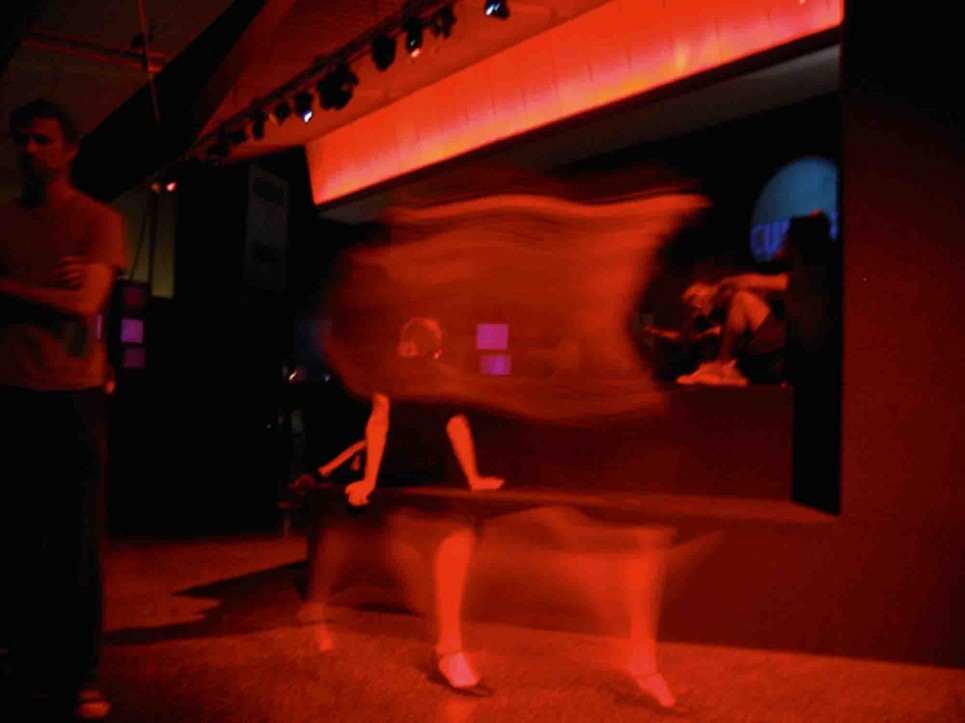 Räumliche Gestaltung eines Kulturkongresses in einer zweigeschossigen Messehalle. Unten: interaktive Rauminstallation aus 33 beweglichen und benutzbaren Raumkörpern. Umbau zweimal täglich, Ort für verschiedene Programme. Oben: Vortragssituation als Collage aus messeüblichem Inventar.