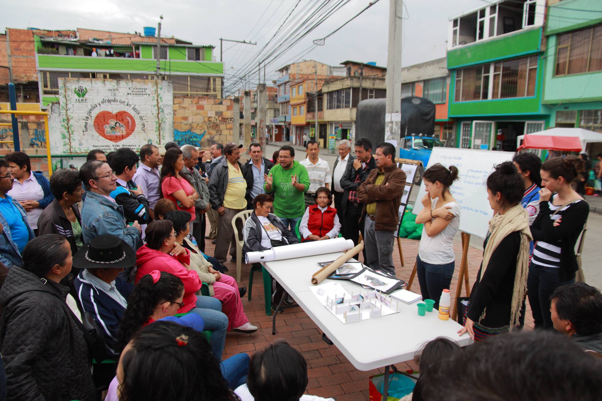 Arquitectura Expandida (AXP) is a design collective based in Bogota, Colombia – a citizen-led laboratory that builds structures -physical, social and cultural-  that invite communities to self-organise and take responsibility towards their own territory.  AXP allies itself with local community leaders and organisations, but avoids a central role, providing only the design and construction expertise for the execution of the projects. The collective’s design philosophy also relies heavily on an embrace of sustainable, affordable and reclaimed materials.