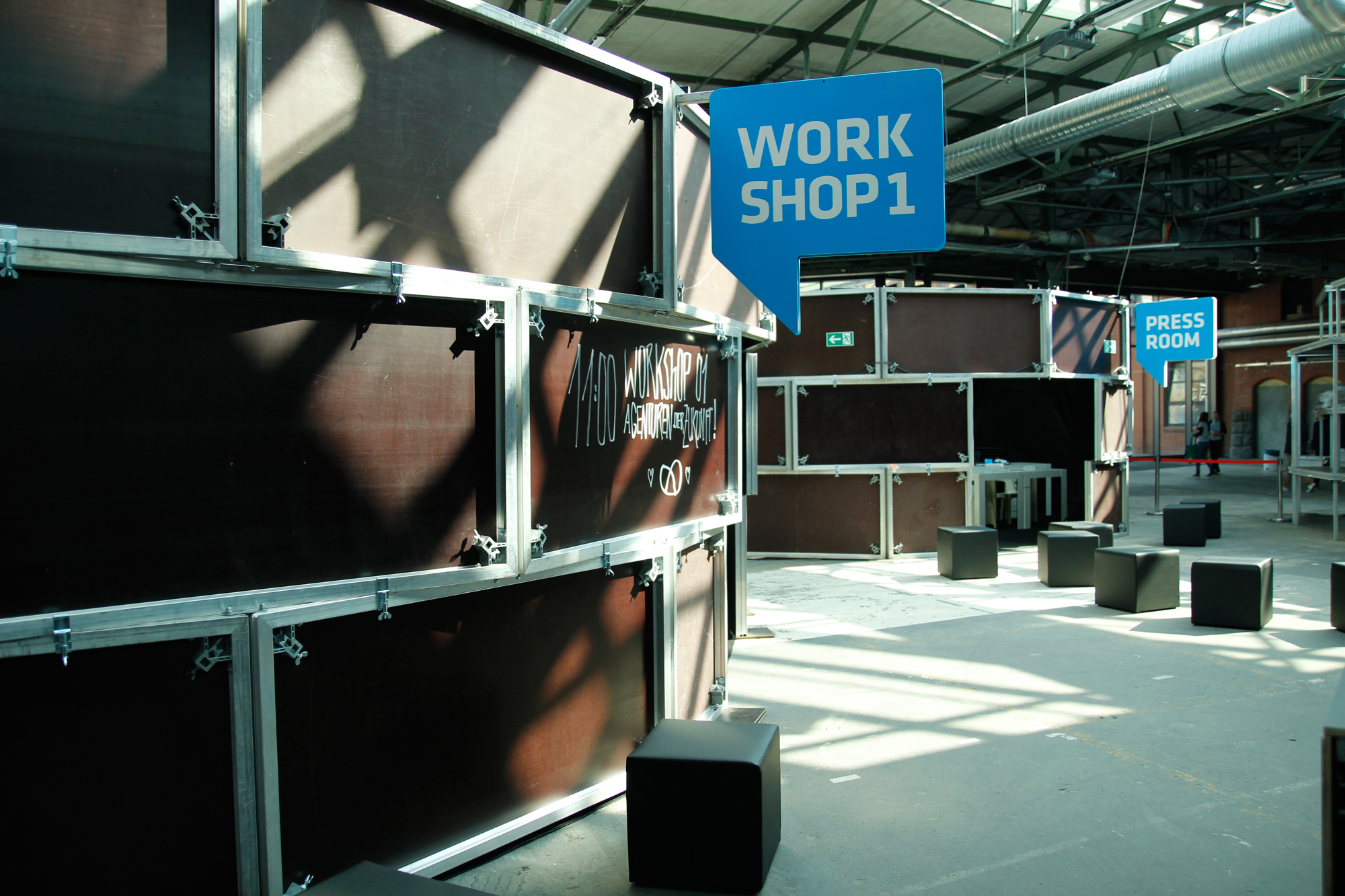 The two web conferences NEXT and Re:publica together bring 6,000 people to Berlin within a few days. For NEXT we develop out of basic elements of digital worlds a concept that characterizes a strong two-sidedness: user interface and hardware, scenery and construction, interior and exterior. The organization and logic of this world allows that visitors in the extensive „space“ of the Station Berlin (a former postal railway station) are not getting lost.