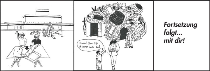 In front of the Schauspielhaus we will build a wooden pavilion made of reclaimed furniture. We are looking for volunteers to help create this installation! Are you available between 09.09.23 and 20.09.23?
