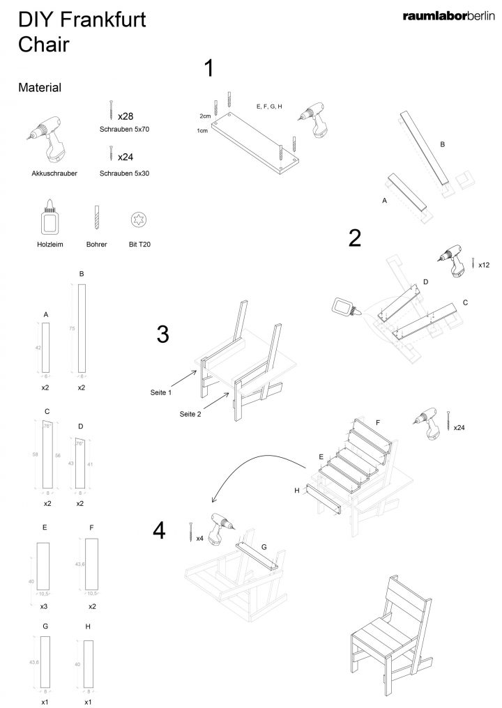 raumlaborberlin beteiligte sich am Programm des Festivals zudem mit einem Workshop. Jeder Teilnehmer konnte hier einen eigenen „Frankfurter Stuhl“ bauen. Damit in kurzer Zeit ein Stuhl entstehen konnte, wurde mit Schablonen gearbeitet. Die Dienstleistung wird vom erfolgreichem Selbstbauen abgelöst. Nach dem Prinzip des „skill sharing“ entstanden Interaktionen zwischen den Teilnehmern: Mit anderen Worten: man hilft sich und kommt dabei ins Gespräch.