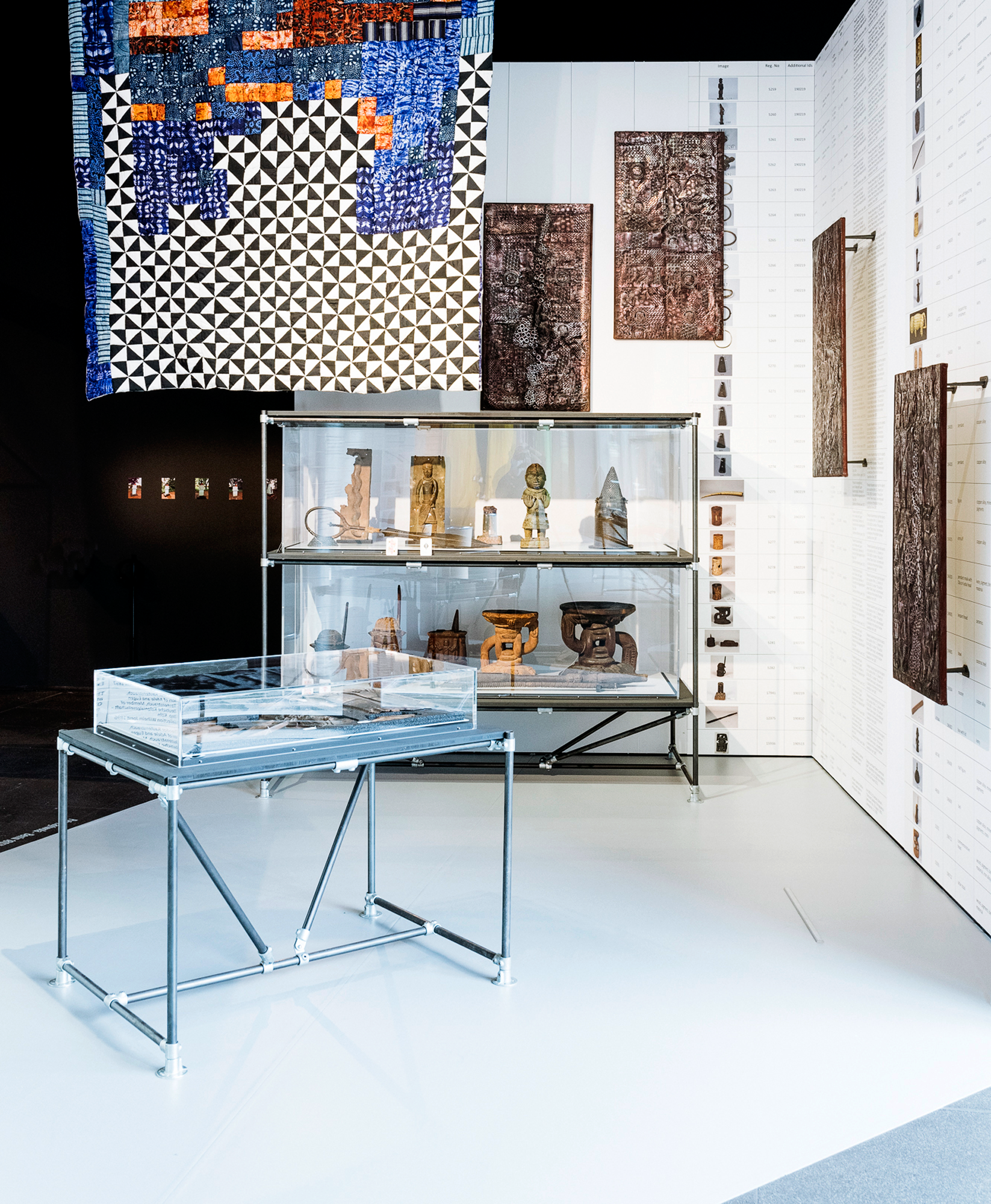 Die nigerianische Künstlerin Peju Layiwola beschäftigt sich mit den geraubten Kulturgütern aus dem Königreich Benin (Nigeria), von denen sich zahlreiche auch in der Sammlung des RJM befinden und hat dazu mehrere nigerianische Künstler*innen eingeladen, die sich teils jahrzehntelang in Nigeria und der Diaspora mit dem Raub von Benin-Bronzen in 1897 auseinandersetzen. Die namibischen Aktivistinnen Esther Utjiua Muinjangue und Ida Hoffmann erzählen vom Genozid an den Herero und Nama in Namibia. Die ungarische Kuratorin Tímea Junghaus hat Sinti- und Roma-Künstler*innen eingeladen, die ihren Kampf um Selbstbestimmung thematisieren. Schließlich klagt der Kölner postmigrantische Verein In-Haus e.V. koloniale Kontinuitäten an.