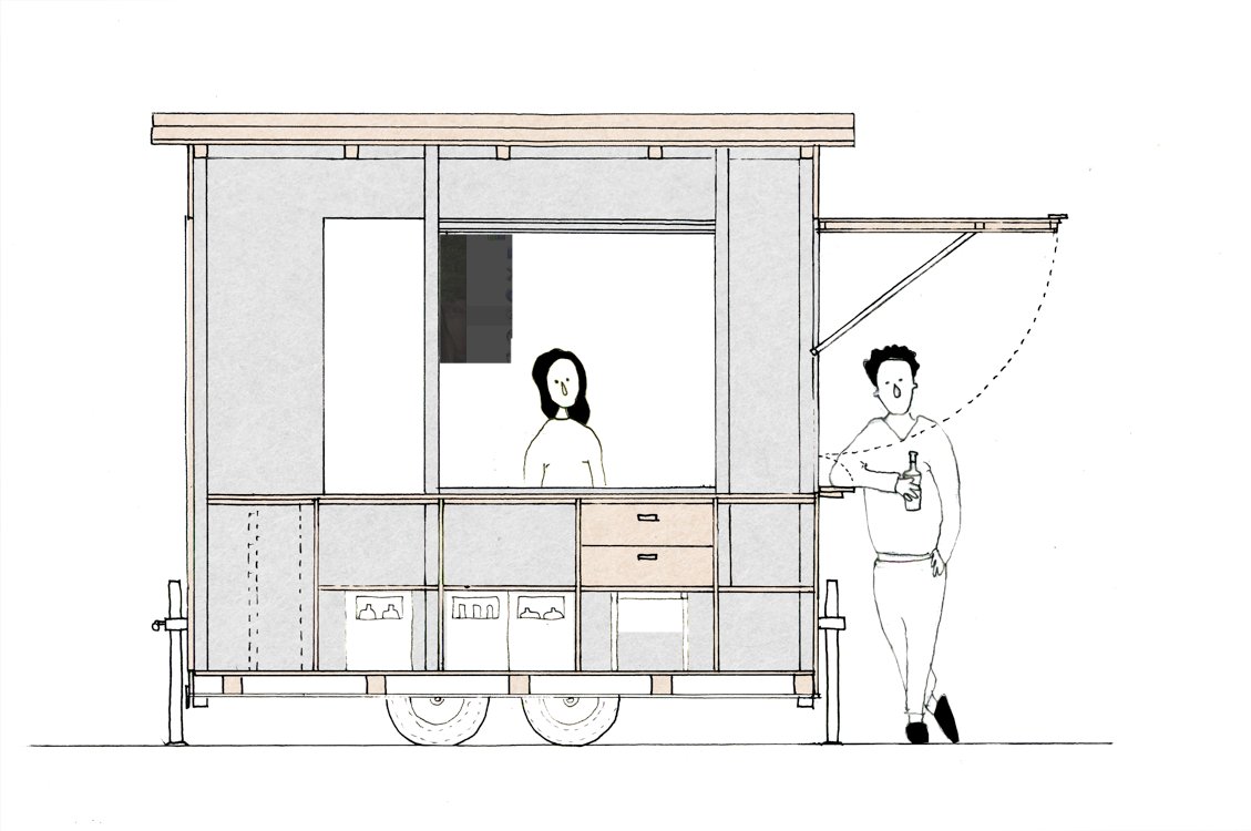 Ein weiterer Wunsch der Schüler war ein Schulhof-Pavillon. Nach einer ersten Ideenfindung und einem kleinen Wettbewerb wurde entschiedenen einen mobilen Kioskwagen mit den Schülern zu bauen. Nach einer kurzen Planungsphase des Projektes kristallisierten sich die ersten Schritte des Bauprozesses heraus.
