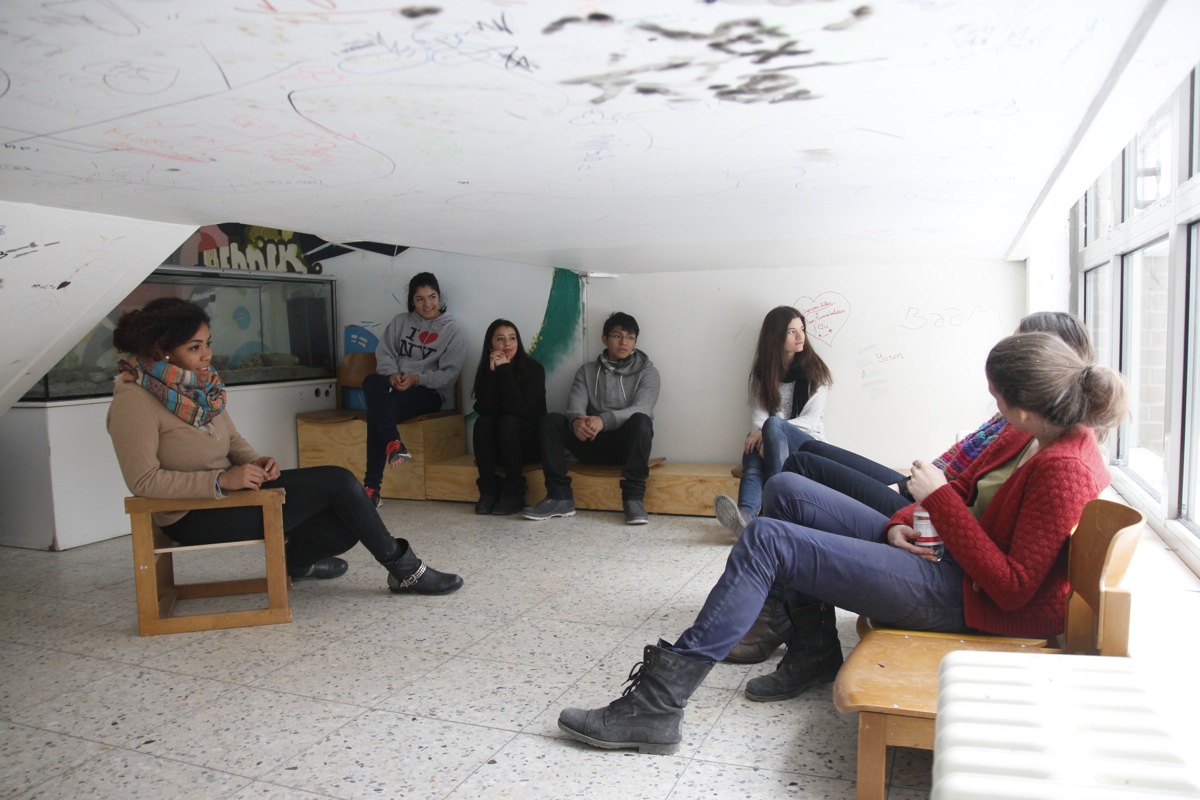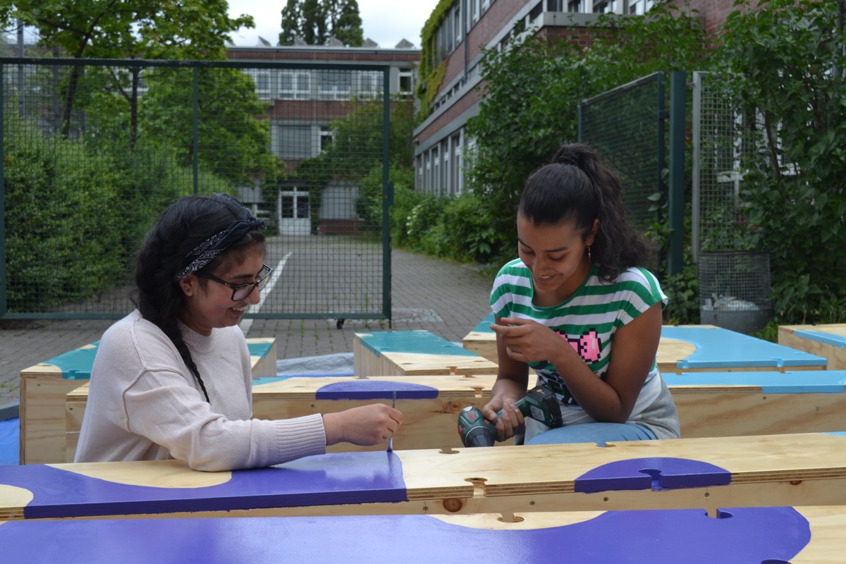 Das Projekt streckt sich über zwei Jahre in denen Raumlabor mit den Schülern zusammen Ideen entwirft und umsetzt, wie sie ihre Schule und den Hof verbessern können. Unter anderem entstanden Sitzgelegenheiten für unterschiedliche Raumsituationen, die aus alten Materialien neu zusammengesetzt wurden. Es wurden Bühnenelemente gebaut, die wie ein Puzzle zu unterschiedlichen Größen, je nach Anlass, zusammengesteckt oder auseinander gepuzzelt werden können.
