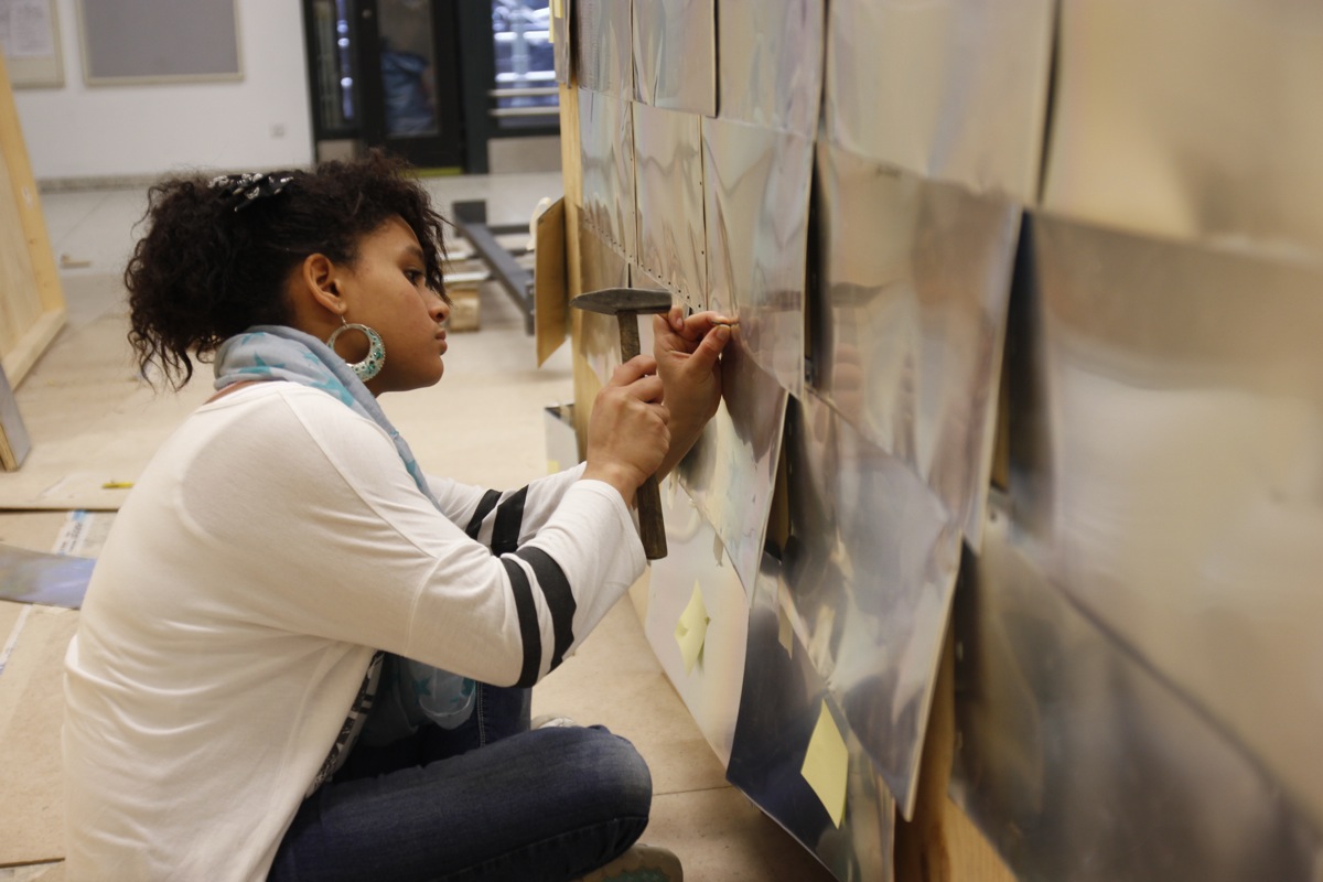 Nach einer Einführung in die neuen Werkzeuge, wird das Dach gebaut, alle Dichtungen gesetzt und Inneneinrichtung vollendet. Um einerseits einen Wetterschutz zu gewährleisten und andererseits dem Kiosk eine futuristische Ästhetik zu verleihen, werden Offsetplatten als Außenhaut auf gehämmert und geschossen