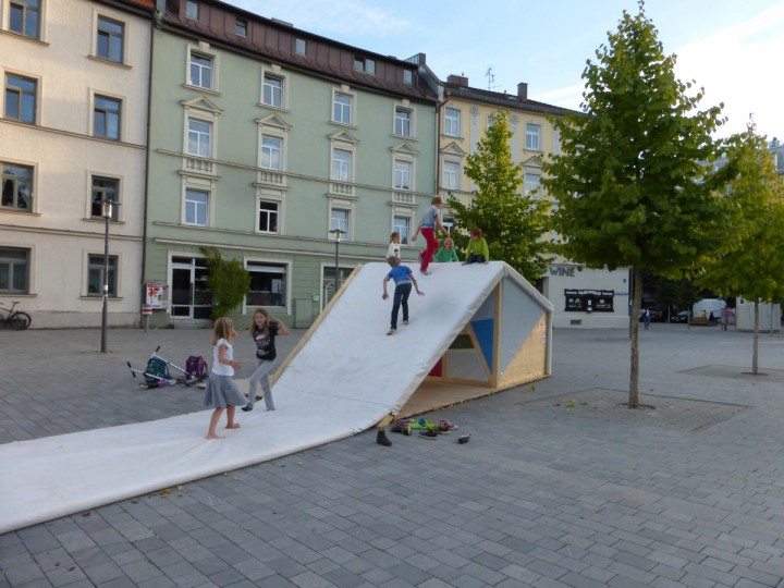 It can not be, that everyone can just sleep where he wants! Or can it be? The Münchner Kammerspiele invited the architecture collective raumlaborberlin, together with 120 young people, to realize an experiment in Munich, which shows a different view of the city with one of the top-ten-rents in Europe: What would happen, if everyone leaves their homes and build booths at the most unlikely places in the city? Might it create a whole new kind of bonfire society? Of opinions and information exchange with Marshmellow and Cowboy Coffee? Let’s give the future a home in public space!