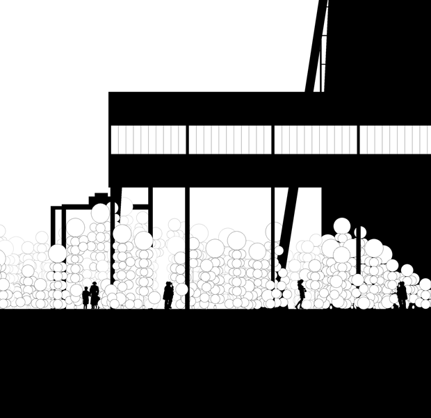 For a few hours, the precision and hardness of the architecture and its materials are confronted with the soft, incomprehensible form of ephemeral foam.