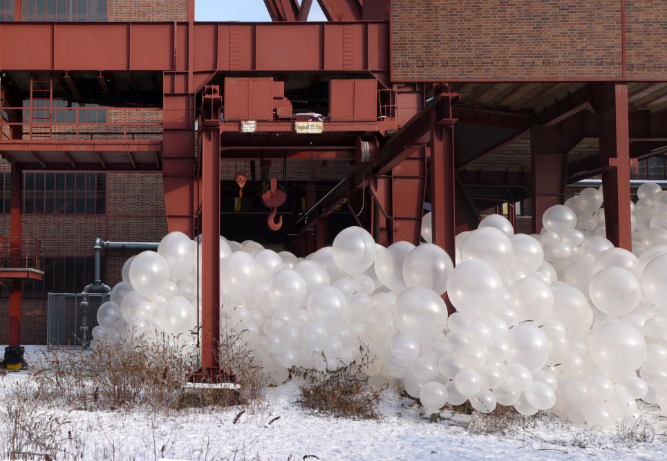 The miners‘ daily cleansing in the former bath house after the shift is what the Soap Opera is about. The transformation of the former colliery into a cultural location evokes a cleaning process. In the real mine, the underground part of the world remains inaccessible, experienced only as an idea. Outside, a luminous mist of bubbles floats between the old bath house, the shaft tower and the grove of birch trees. The visitors immerse themselves into the froth and reach interior foam spaces, from which they have singular views of the shaft tower and surrounding buildings .