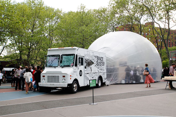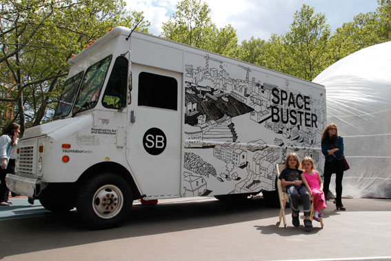 Auf Einladung der Storefront for Art and Architecture haben wir 2008 den Spacebuster entwickelt und gebaut um die Qualitäten und Möglichkeiten im öffentlichen Raum New Yorks zu erkunden. Der Spacebuster reagiert auf den architektonischen und sozialen Raum und seine Bedingungen. Er öffnet den Stadtraum für temporäre gemeinschaftliche Nutzungen.