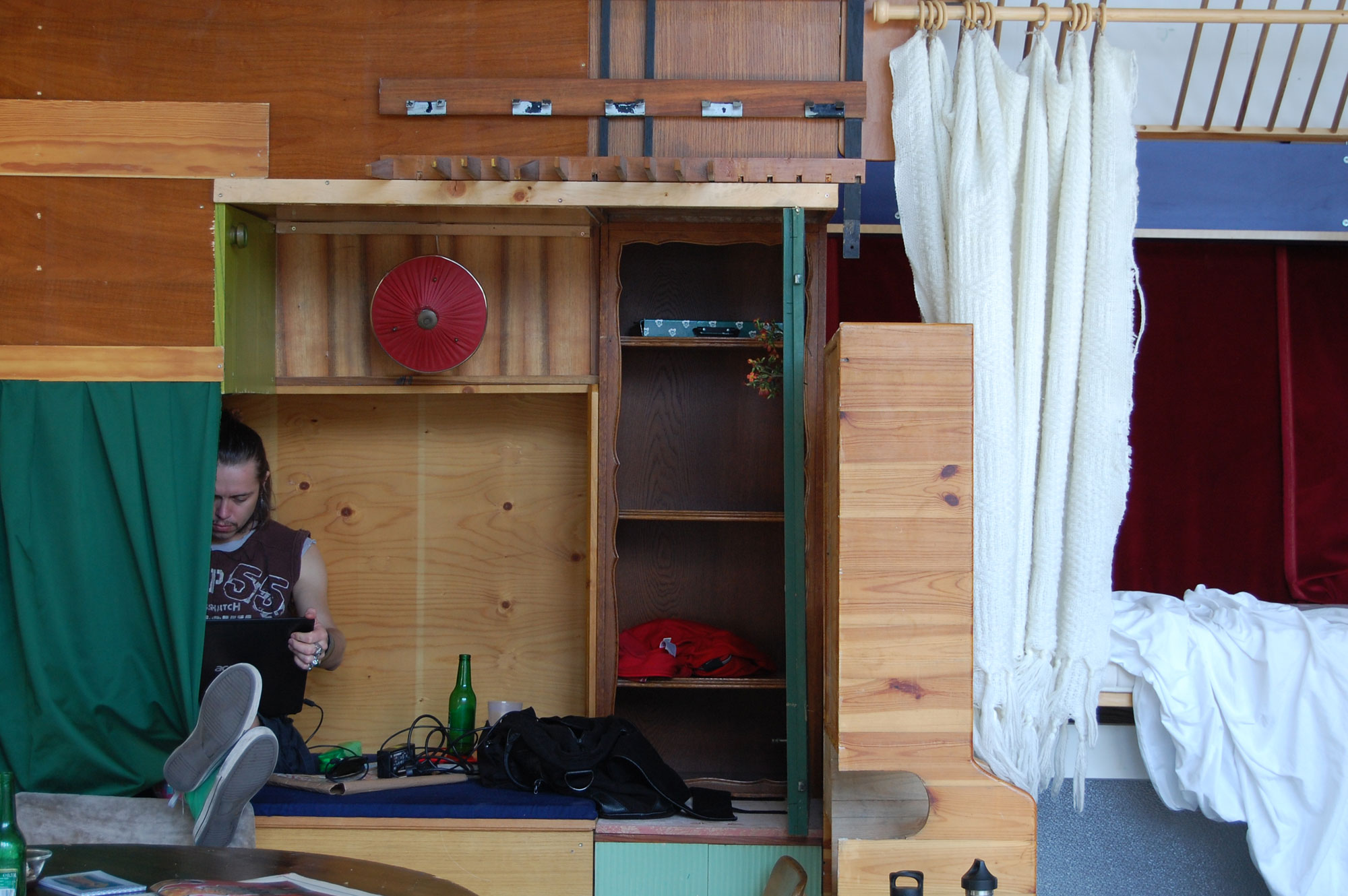 raumlaborberlin, die bereits beim steirischen herbst 2008 das Joanneum zum Festivalzentrum verwandelten, geben dem Marathon-Camp eine flexible Gestalt, verbinden die beiden Gebäude Thalia und Opernring 7 zu einer Arbeits- und Wohnlandschaft, die genutzt werden will. Und die mit dem Beginn des Festivals nicht schlüsselfertig übergeben wird, sondern die sich während des Camps immer wieder verändert. Und die anschließend als Festivalzentrum mit Stolz die Narben einer Woche intensiven Lebens und Arbeitens herzeigt.