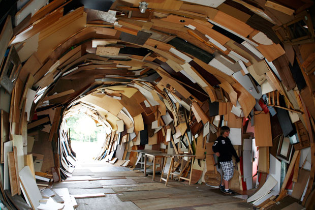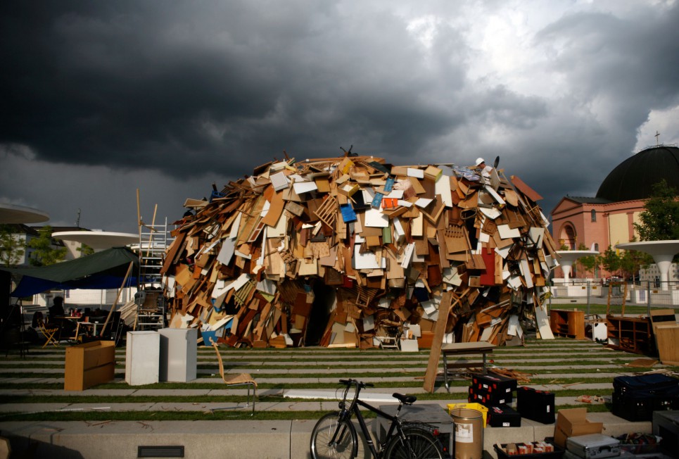 Der Schwarm aus gewöhnlichen Objekten, wie Möbel, Kühlschränke, hölzerne Gegenstände, Müll, Balken, Fenster etc., kann als Treffpunkt und Forum für Konflikte und Diskussionen verwendte werden.