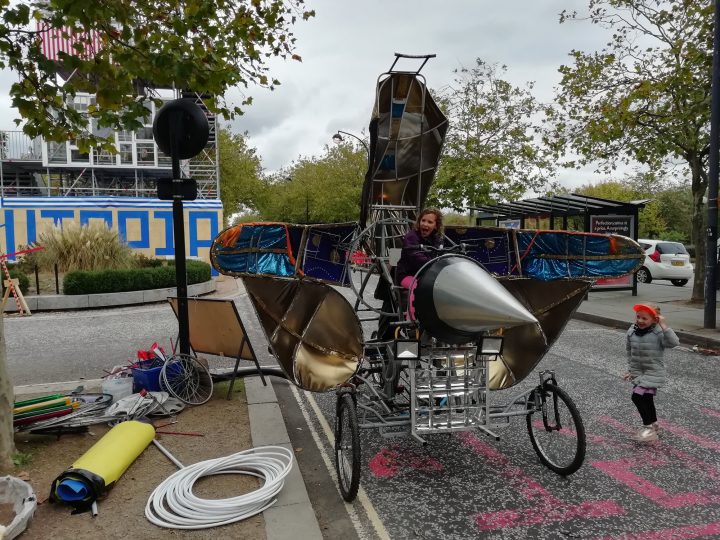 The Boulevard Broadcast is a mobile radio station that has the unique ability to pick up signals from the future and broadcast to the present. As it cycles up and down the boulevard, the antenna structure swaying in the air, the radio will host workshops with different communities to create actional narratives about future living in Milton Keynes. These stories will be broadcast in a daily radio show. At the end of the festival we propose a parade, a moment in which these actions can be lived out in reality.All the Boulevard Broadcast Programs on Mixcloud