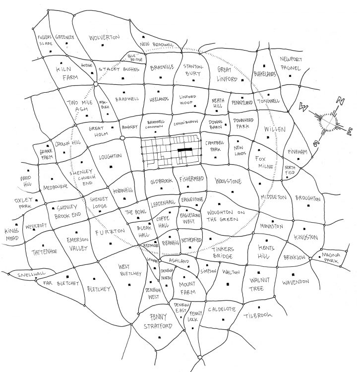 Milton Keynes is one of the UK’s most prominent examples of the “New Towns Movement” of the 60’s. It is the largest of the UK New Towns and arguably the most successful. In contrast to many other New Towns, MK was heavily influenced by Ebenezer Howard’s “Garden City” movement; it is very green, combining extensive tree-lined boulevards and vistas with modernist architecture, urban spaces and a radically segregated traffic system.