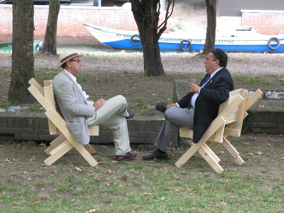 At the BIENNALE DI ARCHITETTURA, VENICE the software SEDIA VENEZANA was introduced and tested. The software is a set of construction plans and instructions for modules, which are developed for easy assembly. The construction methods are constantly tested and improved. The modules can be assembled into chairs, tables, and shelves, as well as walls and shelters. The participants can transform the modules accidentally or intentionally. A process of learning by doing. The team will record and reuse all possible mutations of the system and incorporate them into a growing structure.