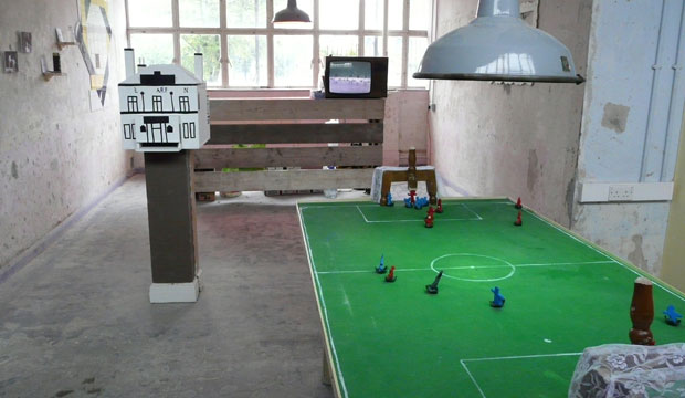 Wie kam es zu dem was wirklich da war: zwei Pubs, zwei Schulen, eine Metro, ein Kohlenplatz? Wir erfanden also die Parallelgeschichte angelegt an die Geschichte von Everton und FC Liverpool: ein Fußballclub, der durch den Bau des Kanals geteilt wurde, in zwei rivalisierende Fußballvereine. Die beiden Pubs waren einst ihre Vereinsheime. Der Bau der Metro teilte ihre Bolzplätze und zwang sie umzuziehen. Ein spanischer Kohlenhändler kaufte eines der Grundstücke und als er von der geplanten Parkanlage hörte, nannte er seine Firma Carolina Coal Company.