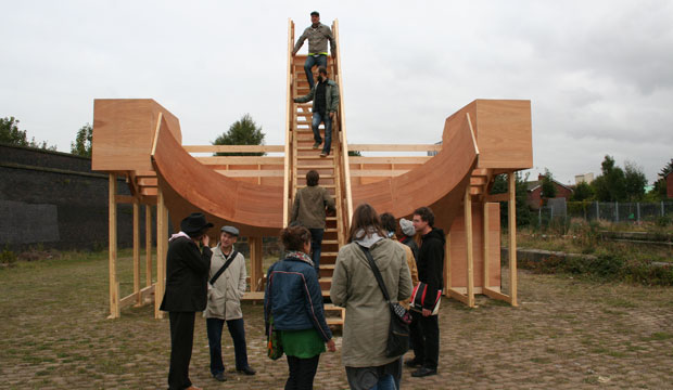 Raumlabor approached this project with the questions: is reinventing the history of a place a good idea, when the current accepted history isn’t helping the present situation? Finding, as in our case, no suitable point of departure/entry for a solution to apparent urbanistic problems, is it possible through the interweaving of truth, urban legend and invention to inspire regional pride in the inhabitants of a desolated residential area? And when this (hi)story is presented in a positive light, could it get the ball rolling? Is it possible by reinventing a history to create a new perspective for a site which has undergone a century of urban catastrophes?