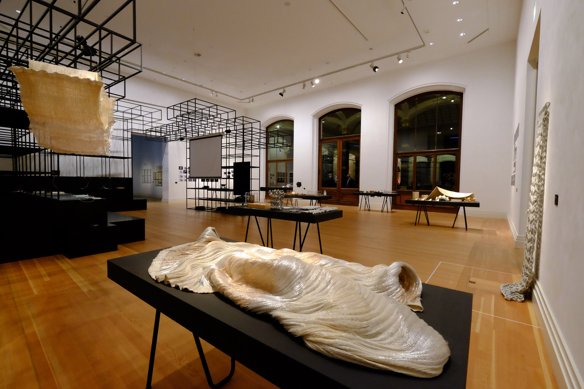 Die Materialerzählung schlägt dabei eine Brücke zwischen der natürlichen und der menschengemachten Welt und bildet in Raumbildern den roten Faden der Ausstellung.