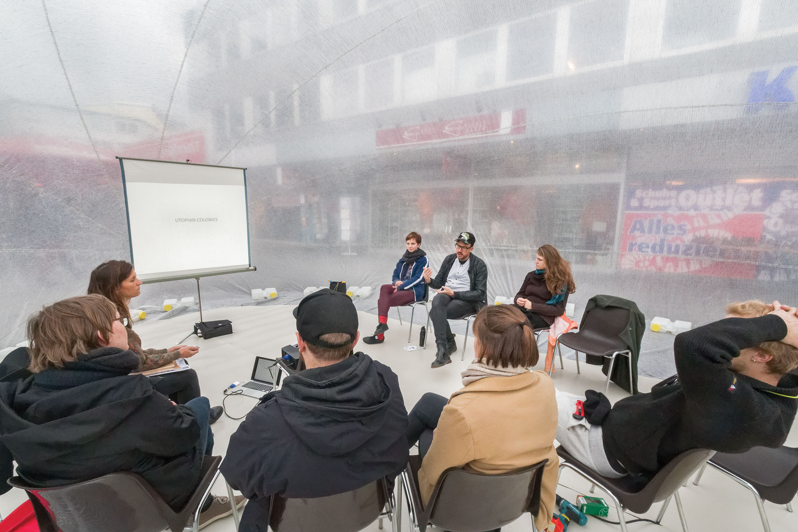 The Urban School Ruhr is organized in three different departments: Spaces of Learning, Practices of Commoning, and Intervention as a Strategy. Its 2016’s Open Programme was developed in autumn throughout five sessions taking place in the cities of Witten and Hattingen. In addition to the departments, the programme is amplified via cooperations with associated tutors and educational partners. Each session comprises of different learning formats: