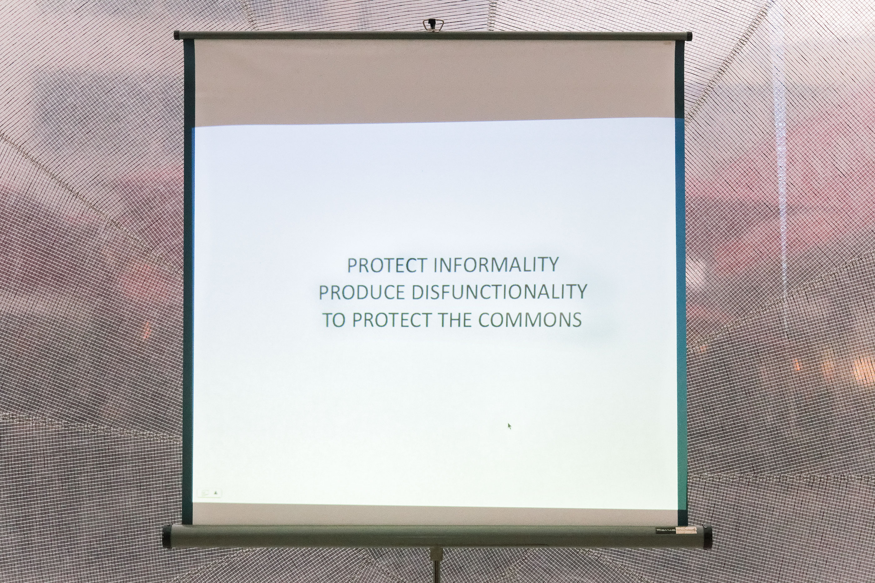 Sofia Dona shared her research on how Athen’s multi-ownership and miscommunication have been ‘protecting’ the city from large scale developments, in order to question and discuss commoning and ways of not only living together but creating ways of resistance.