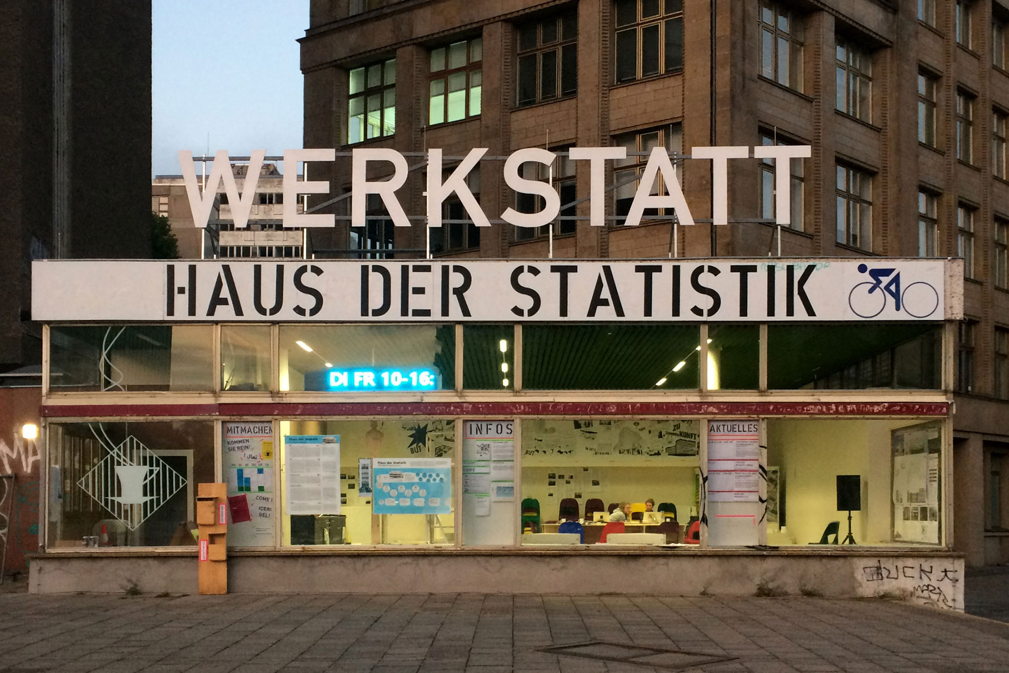 Der ehemalige Fahrradladen Flöckner am Haus der Statistik in der Karl-Marx-Allee 1 wurde im September 2018 als Werkstatt neueröffnet. Hier finden die Veranstaltungen des integrierten Werkstattverfahrens sowie weitere Formate der Mitwirkung statt. Zudem dient sie als erste Anlauf-, Informations- und Mitmachzentrale rund um die Entwicklung des Areals am Haus der Statistik.