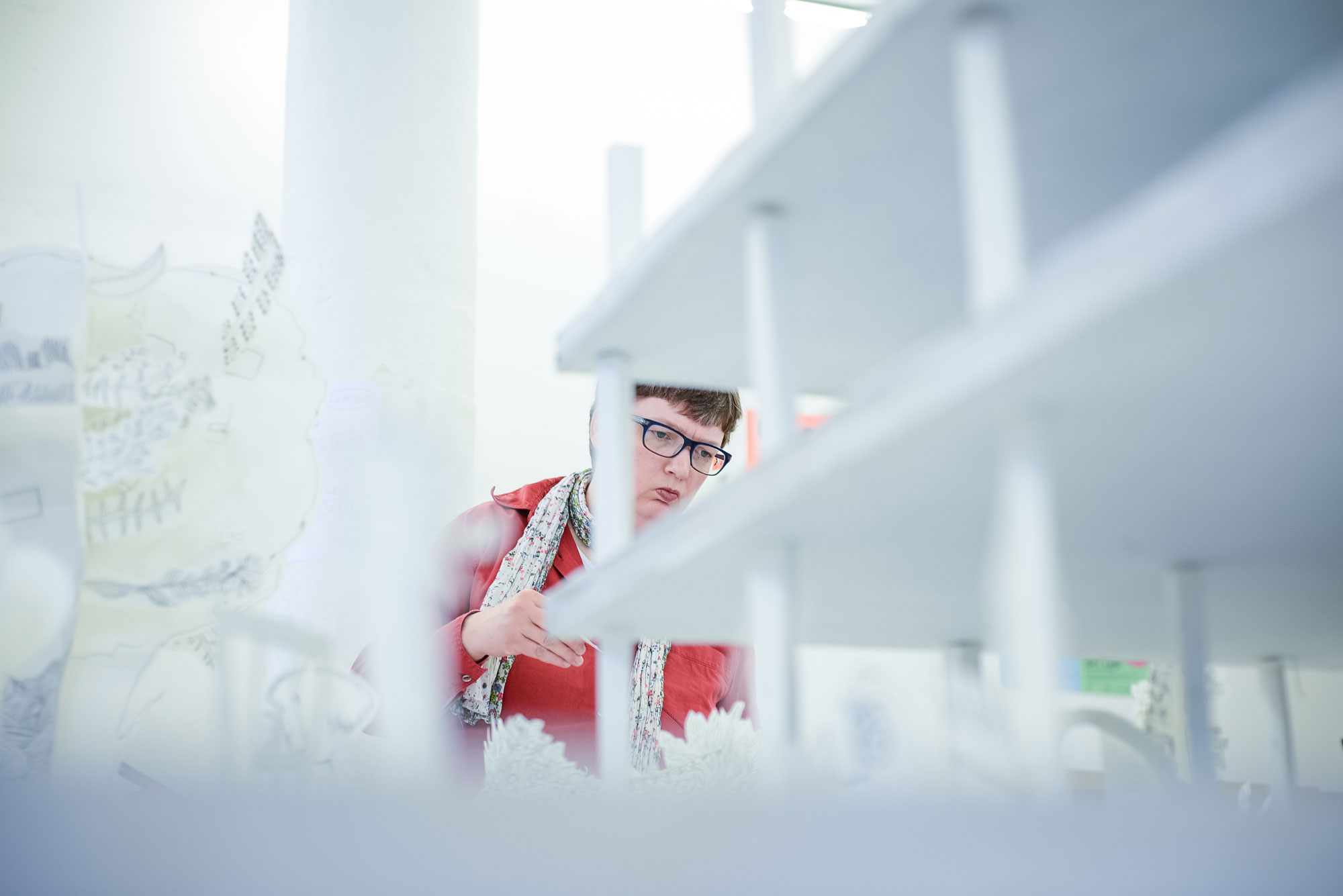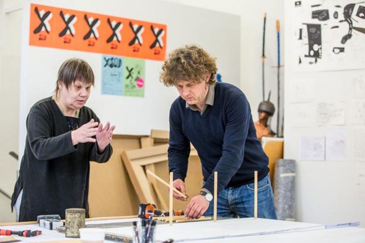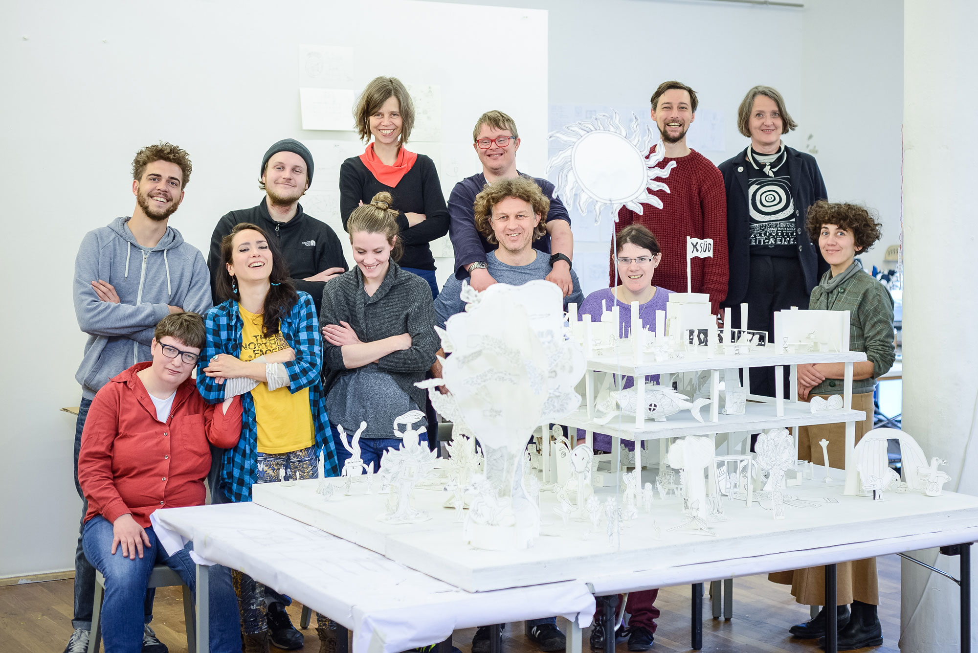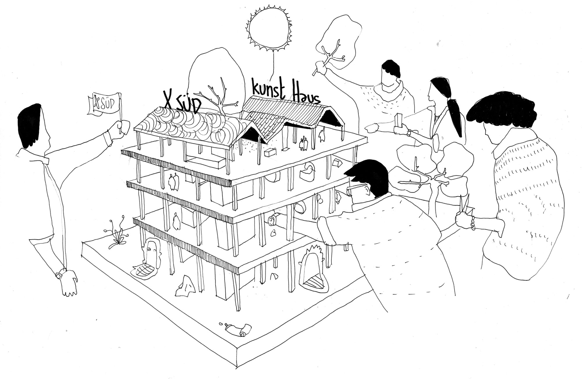 Das Kunsthaus X-SÜD möchte Berührungspunkte schaffen zwischen Akteuren, die sich unter normalen Umständen nicht begegnen. Das Kunsthaus X-SÜD hat sich das Ziel gesetzt, im Sinne der UN-Behindertenrechtskonvention außerhalb von Werkstätten für behinderte Menschen professionelle Arbeitsbedingungen für Künstleren mit und ohne Assistenzbedarf entstehen zu lassen. Das Raummodell will eine starke gemeinsame Vision von dem zukünftigen Ort erzeugen. Die am Bauprozess beteiligten Künstleren arbeiten mit ihren eigenen Bildern und Sehnsüchten. Davon geleitet, führen sie viele Details zu einer großen Assemblage zusammen.