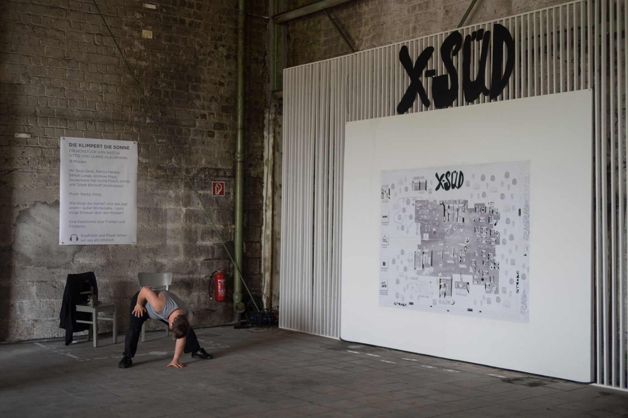 Das mixed- abled Künstlerkollektiv X-SÜD baut dort zu Cityleaks gemeinschaftlich mit anderen und für kurze Zeit einen Treffpunkt mit Ausstellungsraum und Aktionsflächen. Ein Zwischenraum, wo Sehnsüchte, Wünsche und Vorstellungen von neuen Formen des Zusammenlebens lebendig werden. Hier werden Ergebnisse der zweijährigen Auseinandersetzung mit inklusiver Stadtentwicklung vorgestellt. In einer leerstehenden Lagerhalle auf dem Gelände der Parkstadt Süd wird das KUNSTHAUS X-SÜD Modell präsentiert mit Projektzeichnungen und Grafiken und lässt anmuten, wie ein Stadtteil aussehen könnte, wenn er von Künstlern mitgestaltet wird.