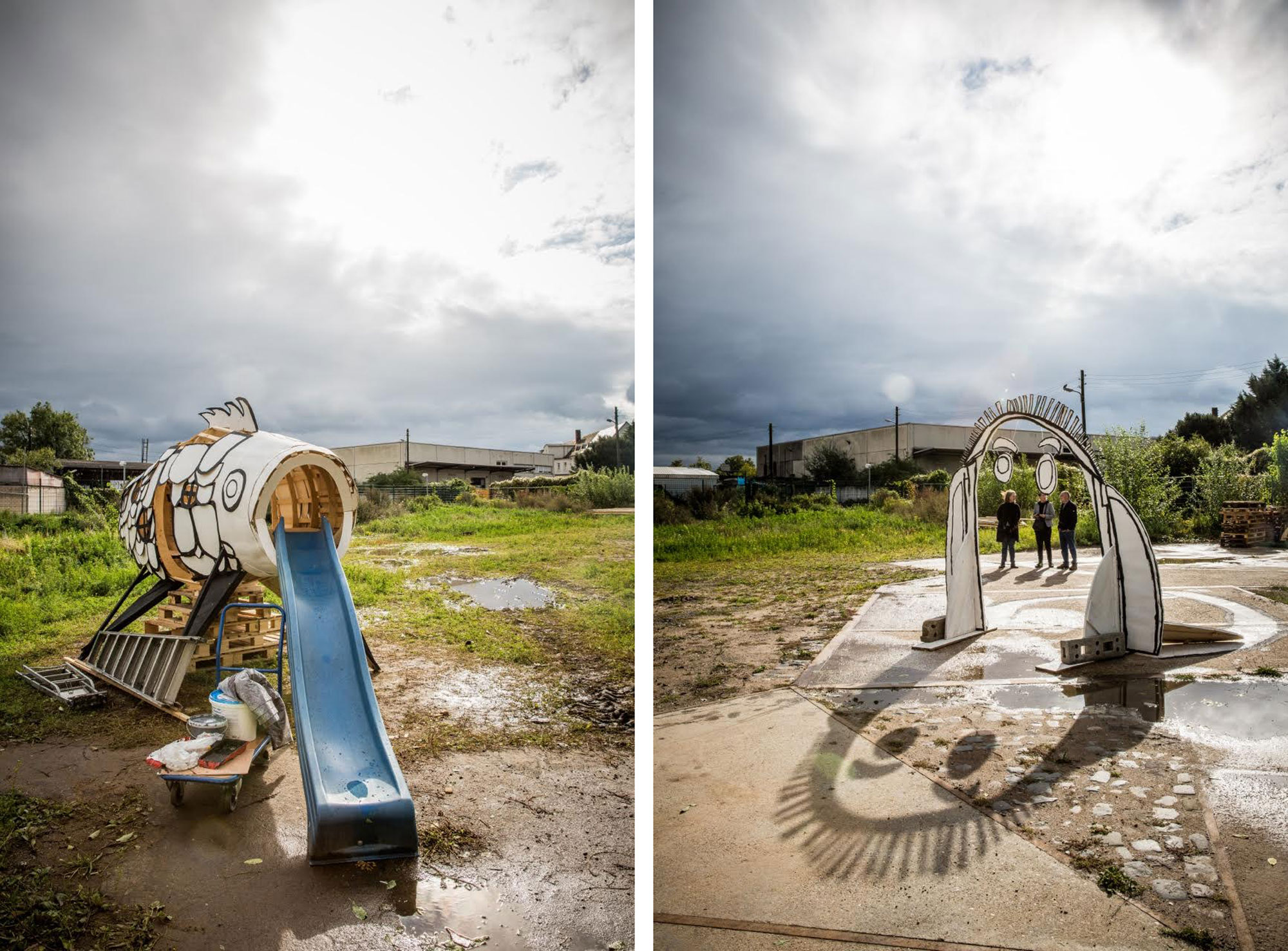 Elemente und Skulpturen aus dem entwickelten Modell erstanden durch gemeinsamer Arbeit während des Festivals.
