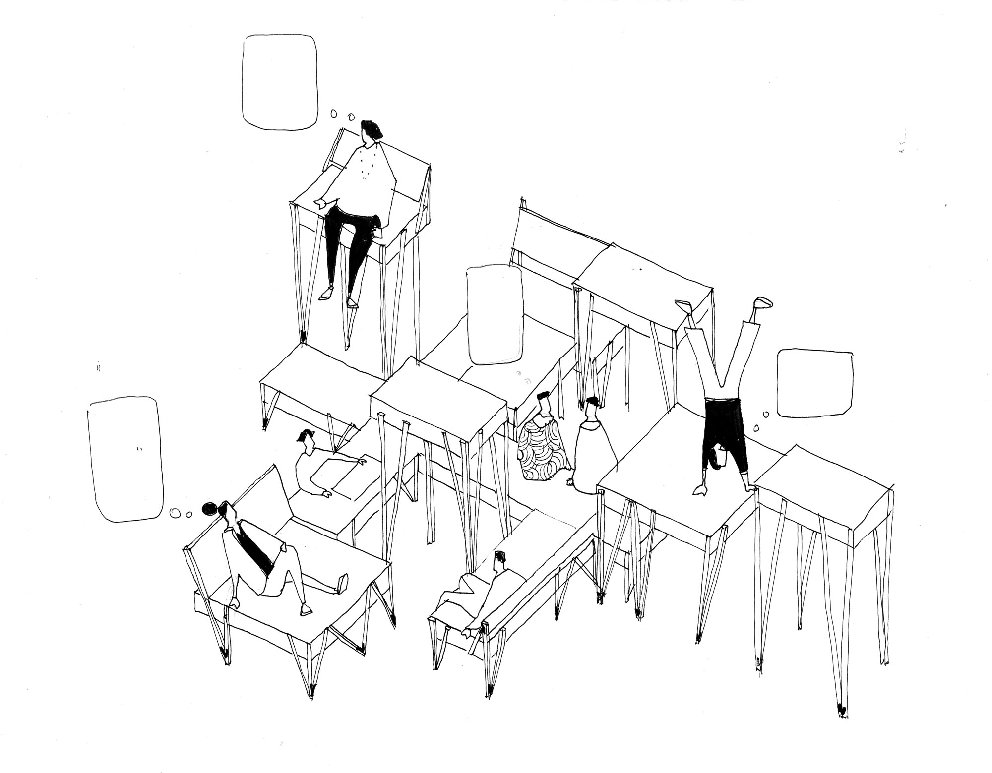 How we want to live together in the future was also discussed in the furniture workshop. The focus was on finding a spacial answer. The students talked about comfort zones, proximity, the foreign and meeting new people. Together, they developed various furniture constellations.